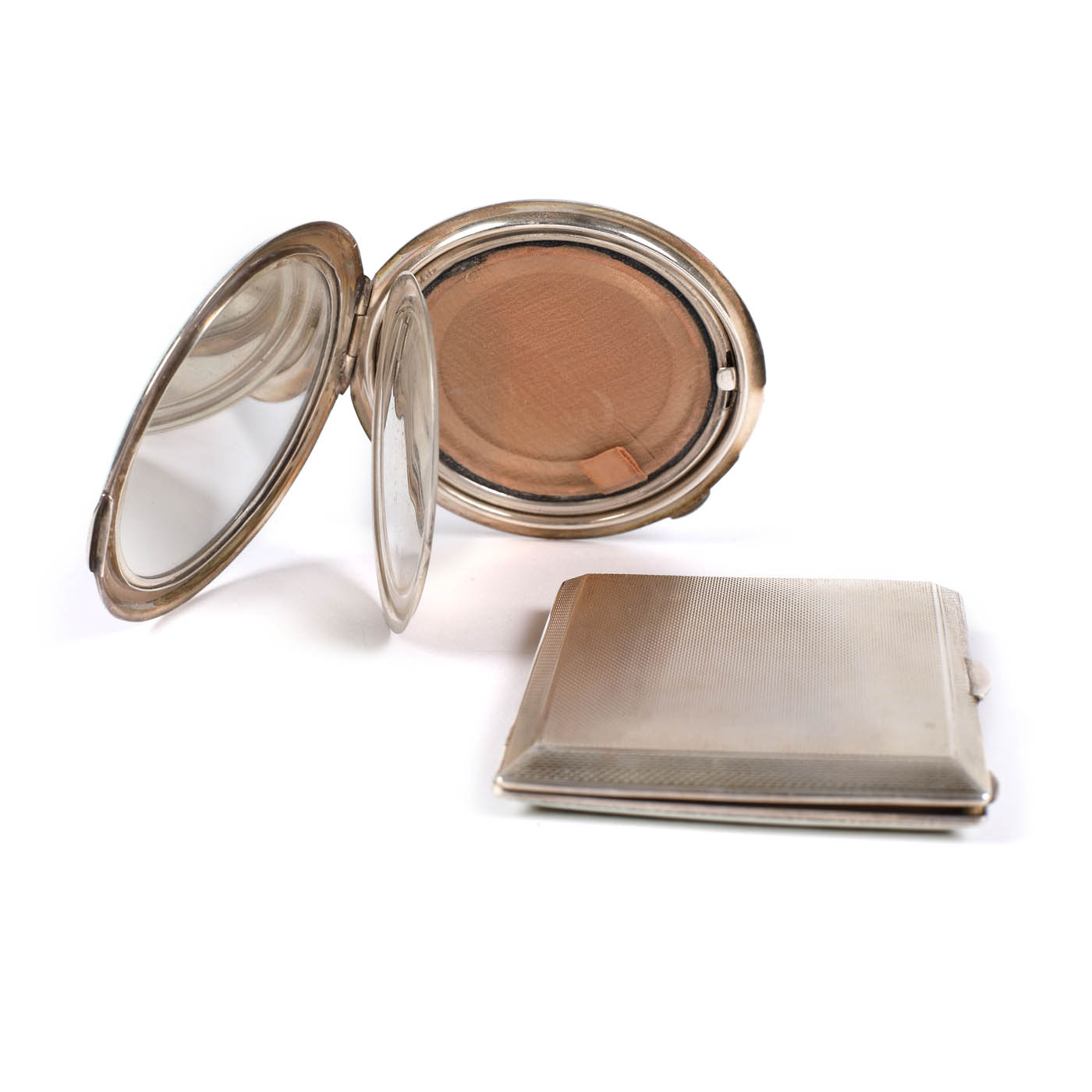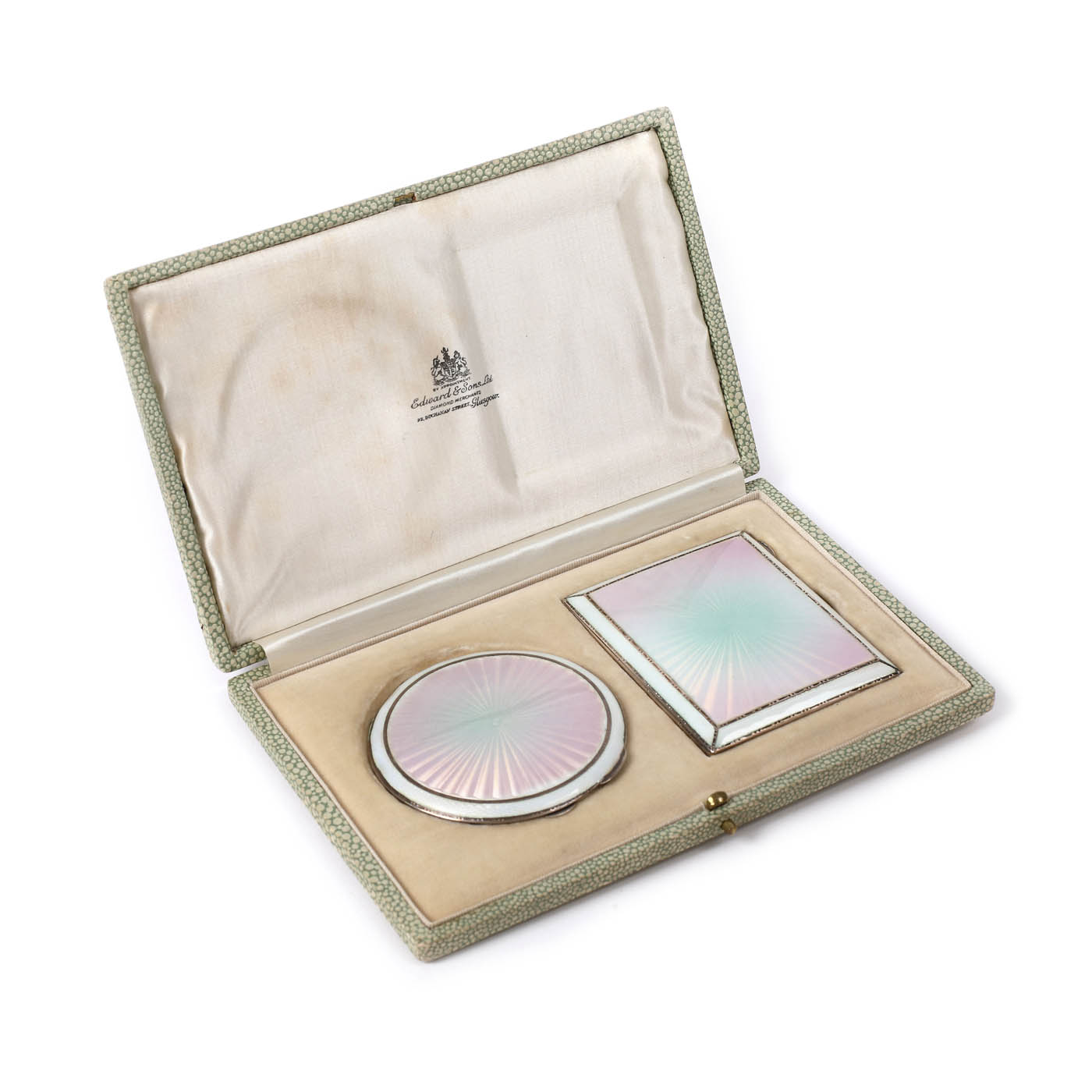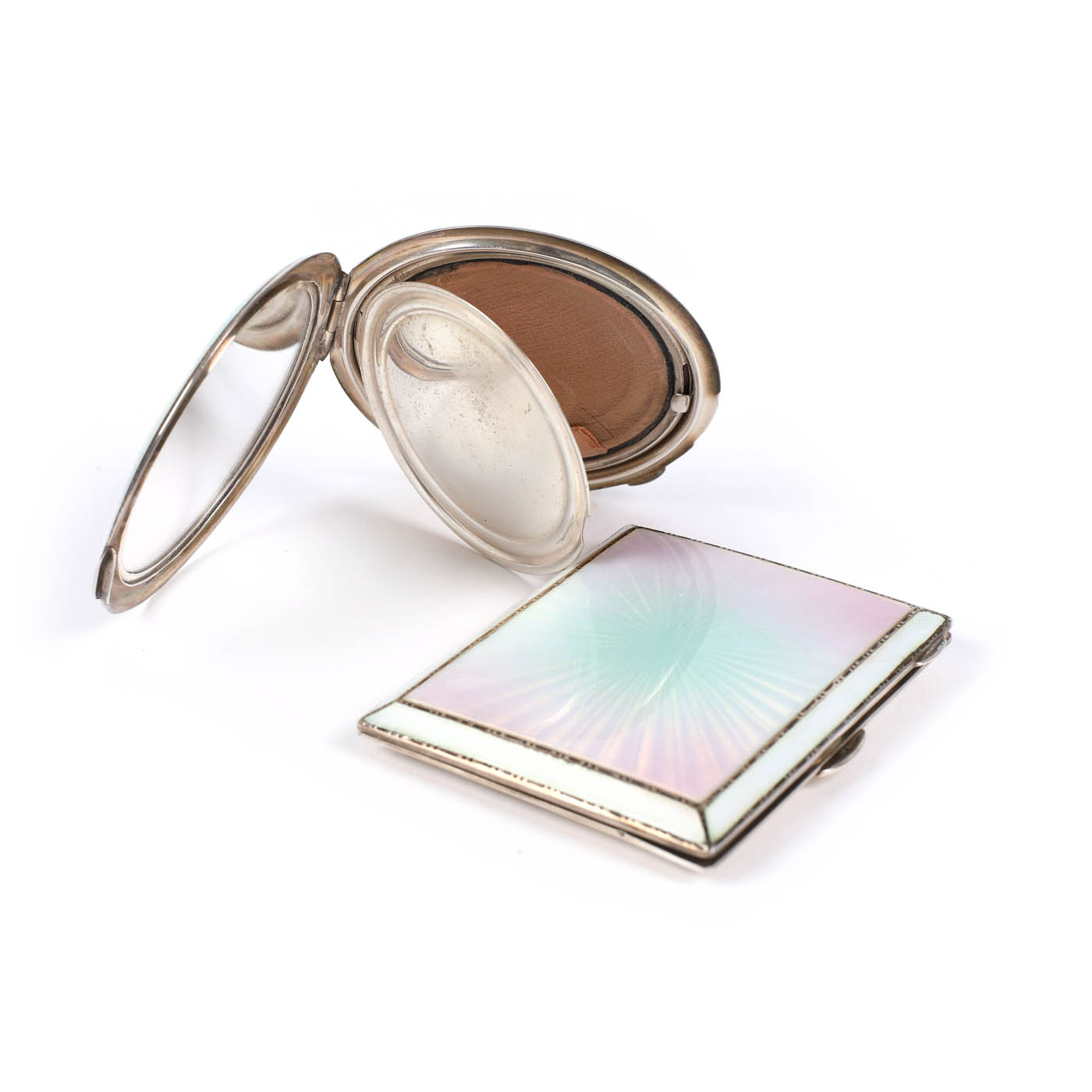 55. Set format din tabacheră si pudrieră, din argint decorat cu email în guilloché, 1937