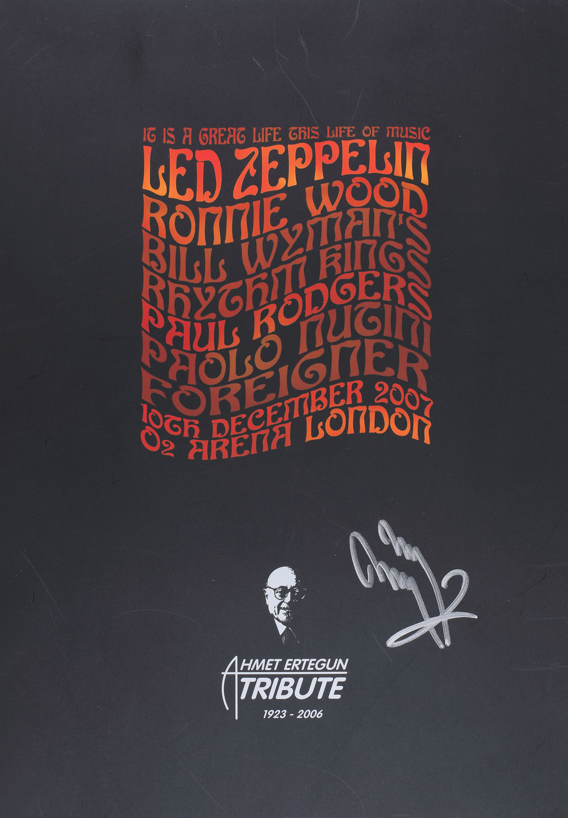 Concertul tribut "Ahmet Ertegun" a fost un concert caritabil care a avut loc la Arena O2 din Londra, în data de 10 decembrie 2007. Atracția principală a fost interpretarea trupei Led Zeppelin, care și-a desfășurat primul concert, după aproape trei decenii de la moartea bateristului John Bonham în 1980. Fiul lui Bonham, Jason Bonham, a cântat la tobe în timpul setului trupei. Potrivit Guinness World Records 2009, concertul deține recordul mondial pentru "cea mai mare cerere de bilete pentru un concert de muzică", deoarece 20 de milioane de cereri pentru spectacolul au fost făcute online. În octombrie 2012, a fost lansat Celebration Day, un film documentar despre concertul eveniment, autograful a fiind primit la acest eveniment.