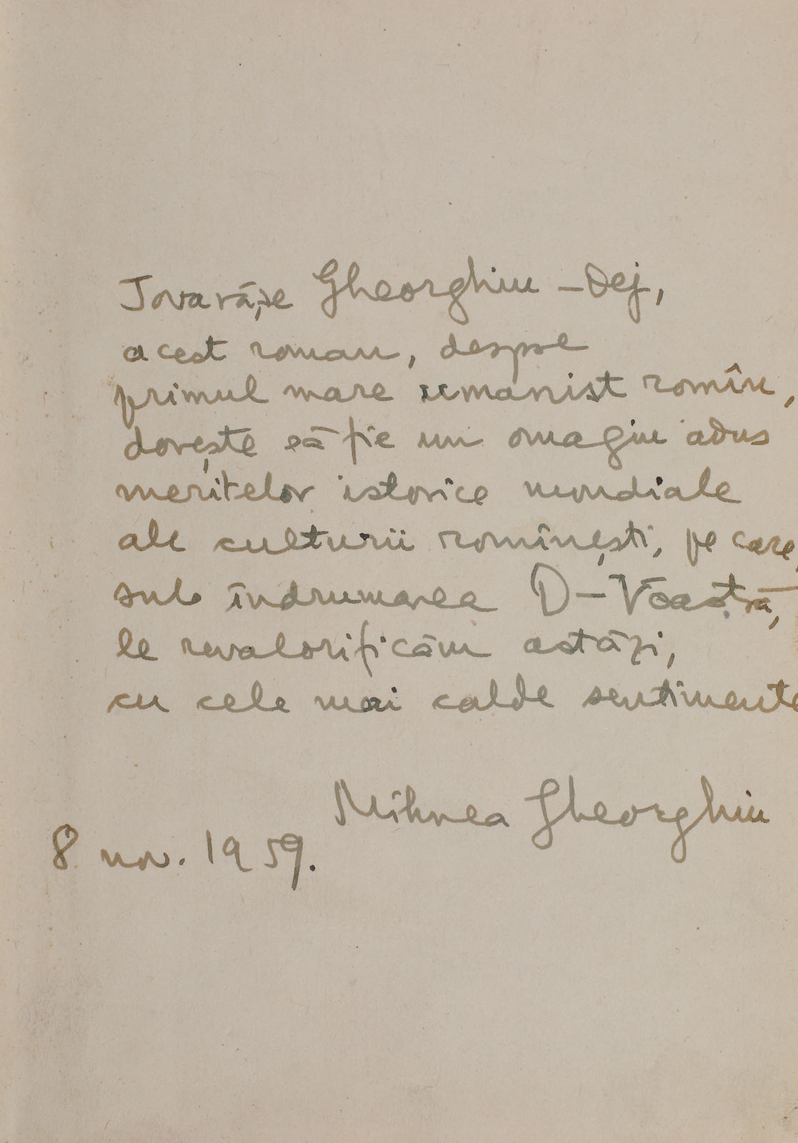 219. ”Două ambasade”, de Mihnea Gheorghiu, București, 1958, cu dedicația autorului către Gheorghe Gheorghiu-Dej