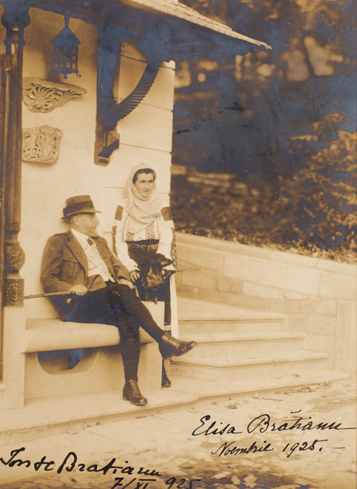 158. Fotografie ilustrându-i pe Ion I.C. Brătianu și pe Eliza Brătianu, pe terasa vilei Florica, 7 noiembrie 1925, cu semnăturile olografe ale politicianului și a soției sale, provine din colecţia Prinţesei Marie Hazel Ghika
