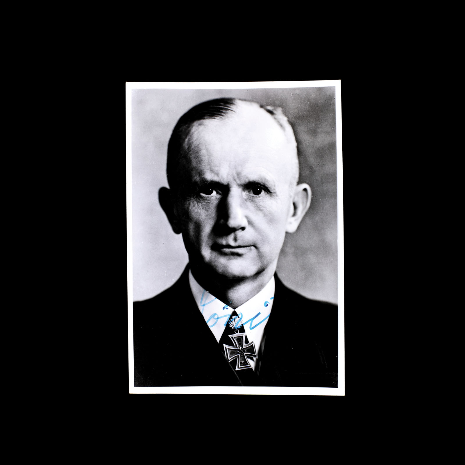 152. Fotografie ilustrându-l pe amiralului Karl Donitz, conducătorul flotei de submarine a Germaniei în timpul celui de-Al Doilea Război Mondial, cu semnătura olografă și certificat de autenticitate