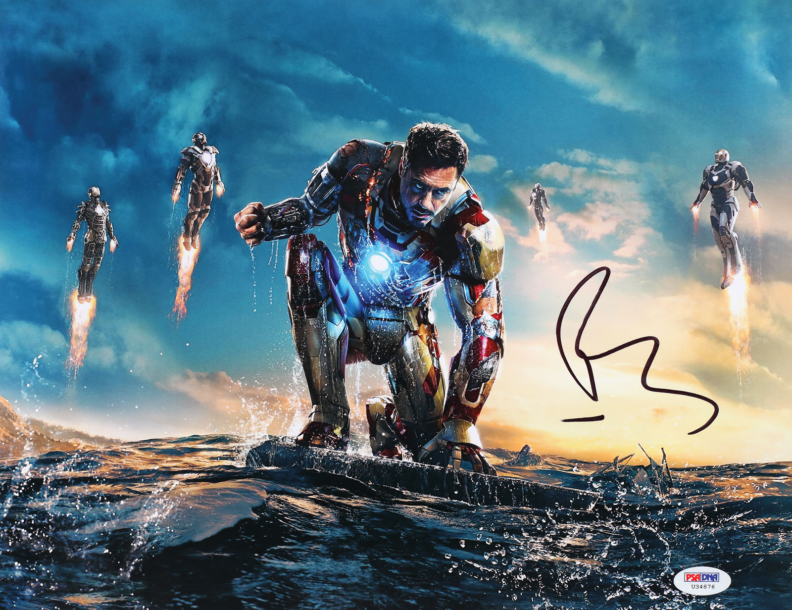 146. Fotografie ilustrându-l pe Iron Man, cu semnătura olografă a lui Robert Downey Jr. și certificat de autenticitate