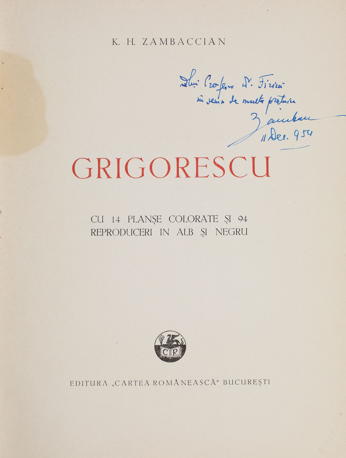 194. ”Grigorescu”, de Krikor H. Zambaccian, București, cu dedicația și semnătura olografă a autorului către chirurgul Theodor Firică