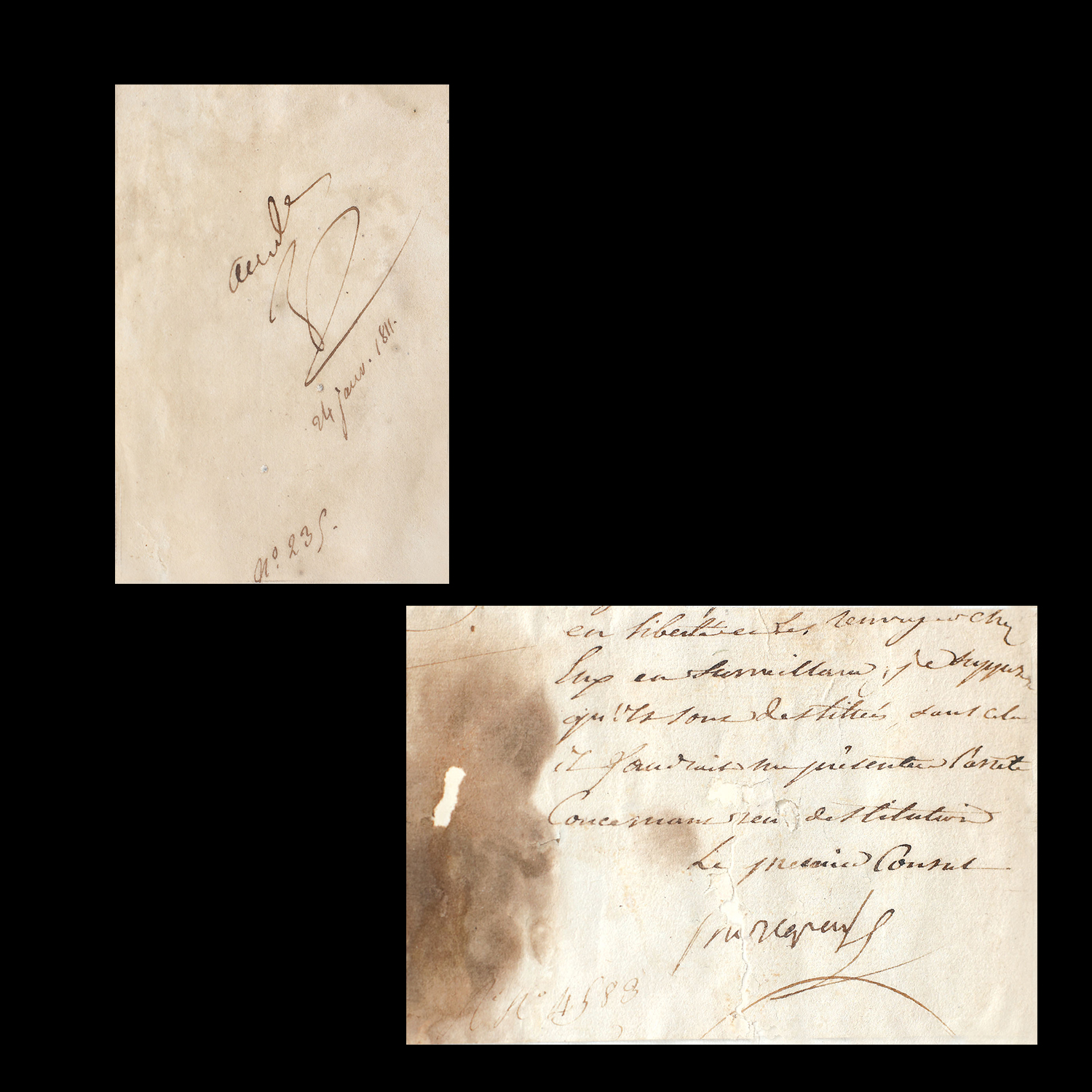 203. Inedit lot format din două semnături olografe ale lui Napoleon Bonaparte, 24 ianuarie 1811