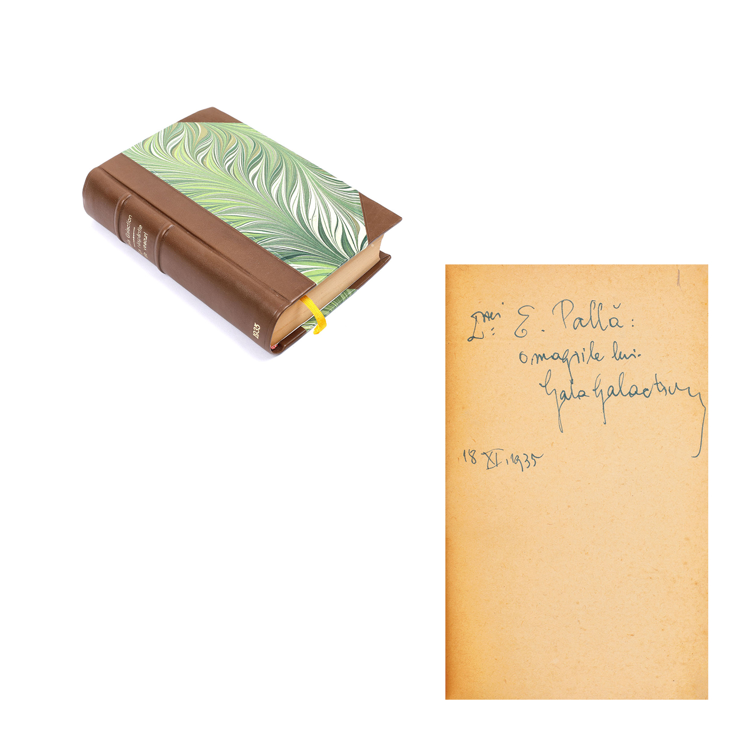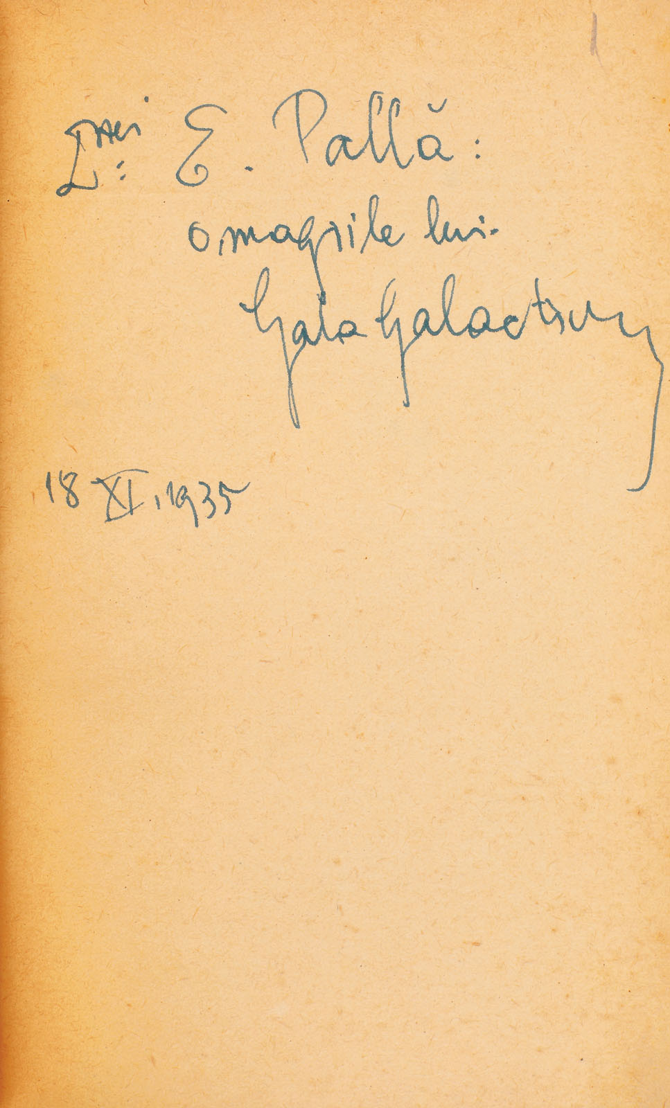177. "La răspântie de veacuri", de Gala Galaction, Bucureşti, 1935, cu dedicaţia și semnătura olografă a autorului