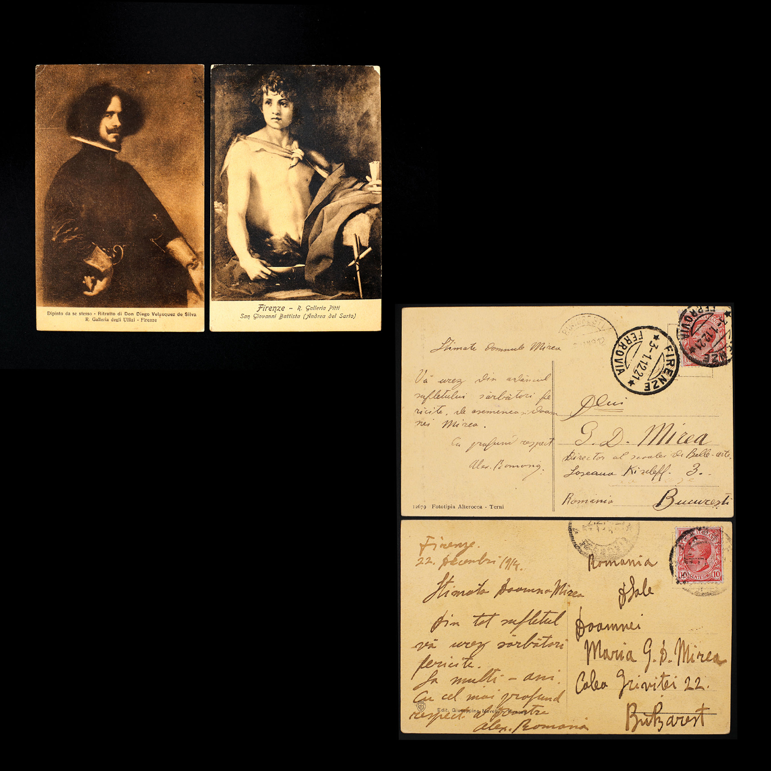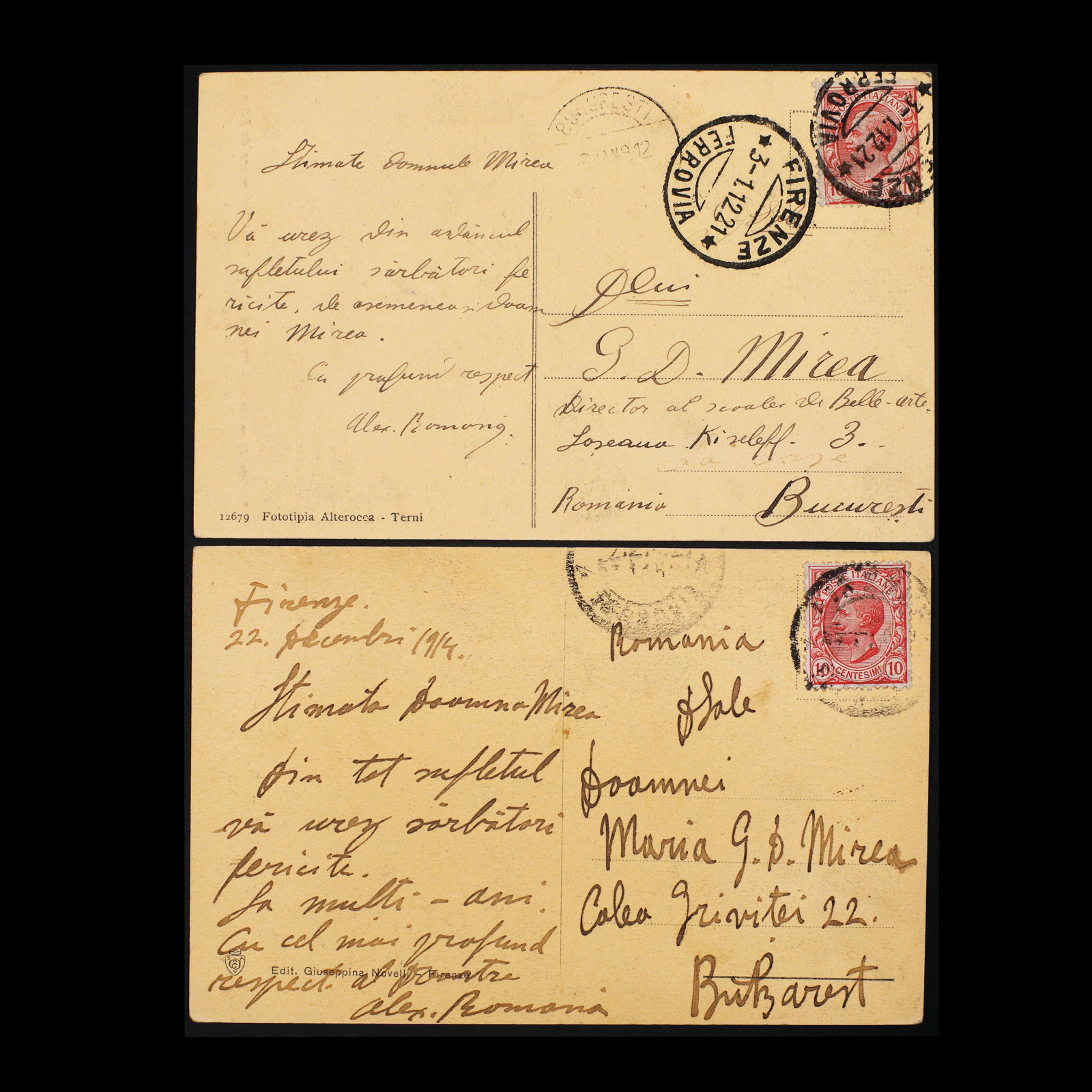 192. Lot format din două cărți poștale trimise de pictorul Alexandru Romano către familia G.D. Mirea, cu ocazia Anului Nou, 1912-1914