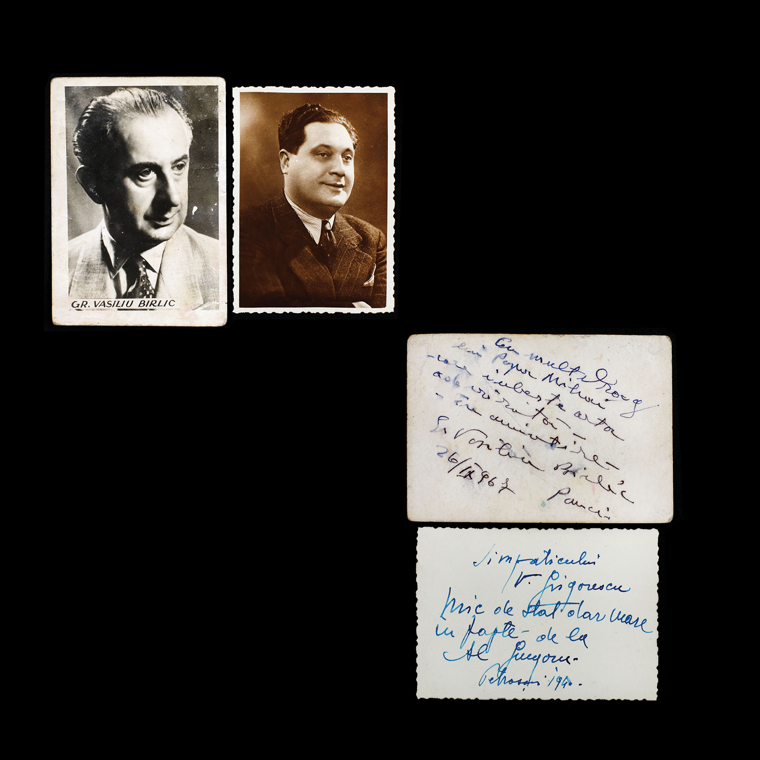 179. Lot format din două fotografii ilustrându-i pe Vasiliu Birlic și pe Alexandru Giugaru, cu semnăturile olografe ale actorilor