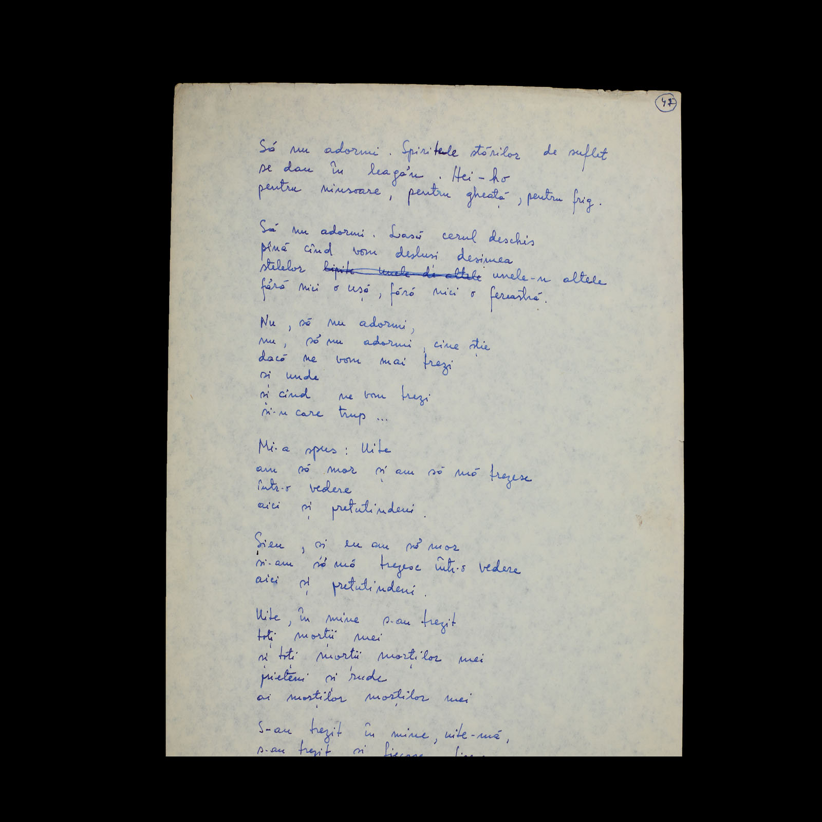 178. Manuscris "Cosmogonia sau cântec de leagăn", de Nichita Stănescu (4 file)