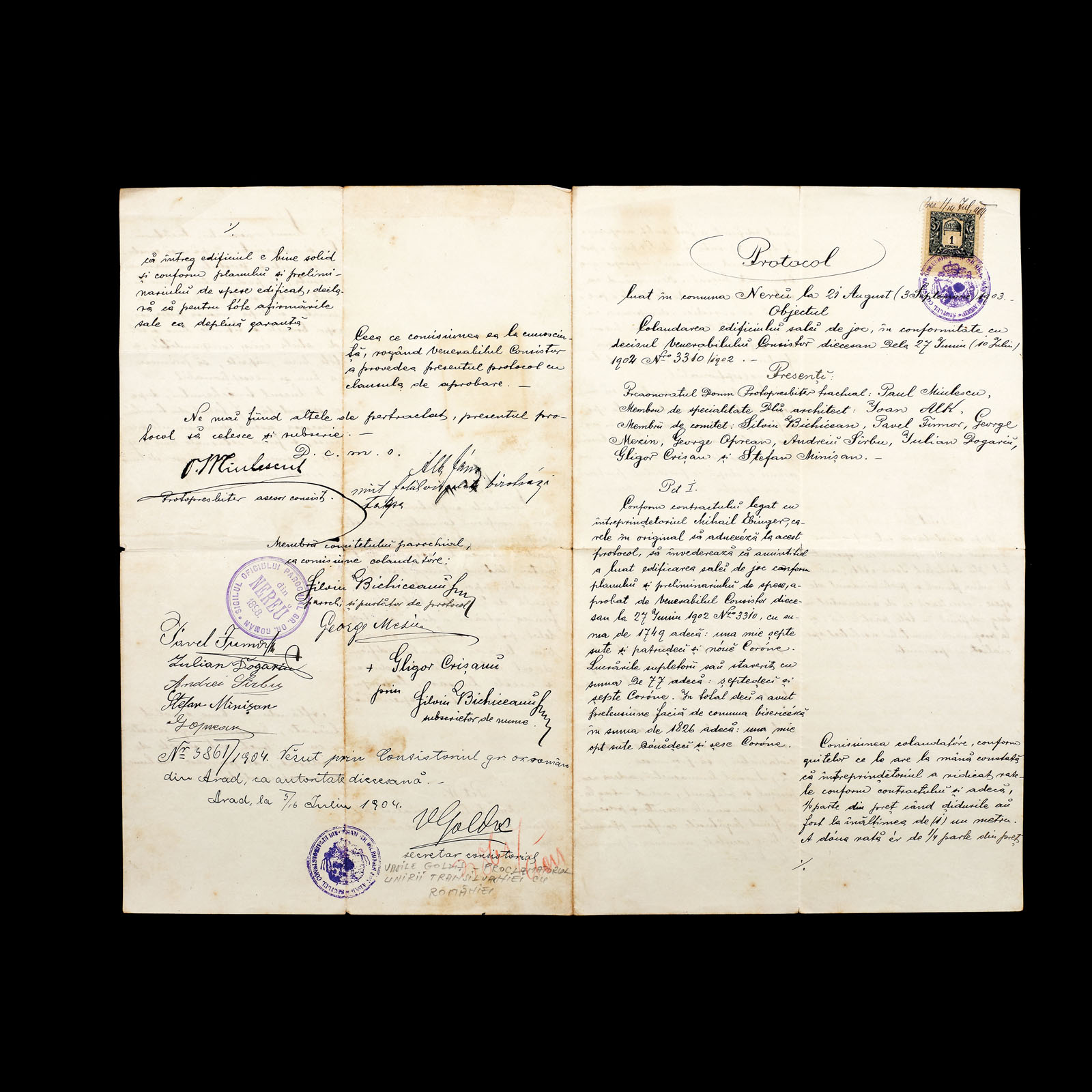 171. Protocol, Arad, 1904, cu semnătura olografă a lui Vasile Goldiș