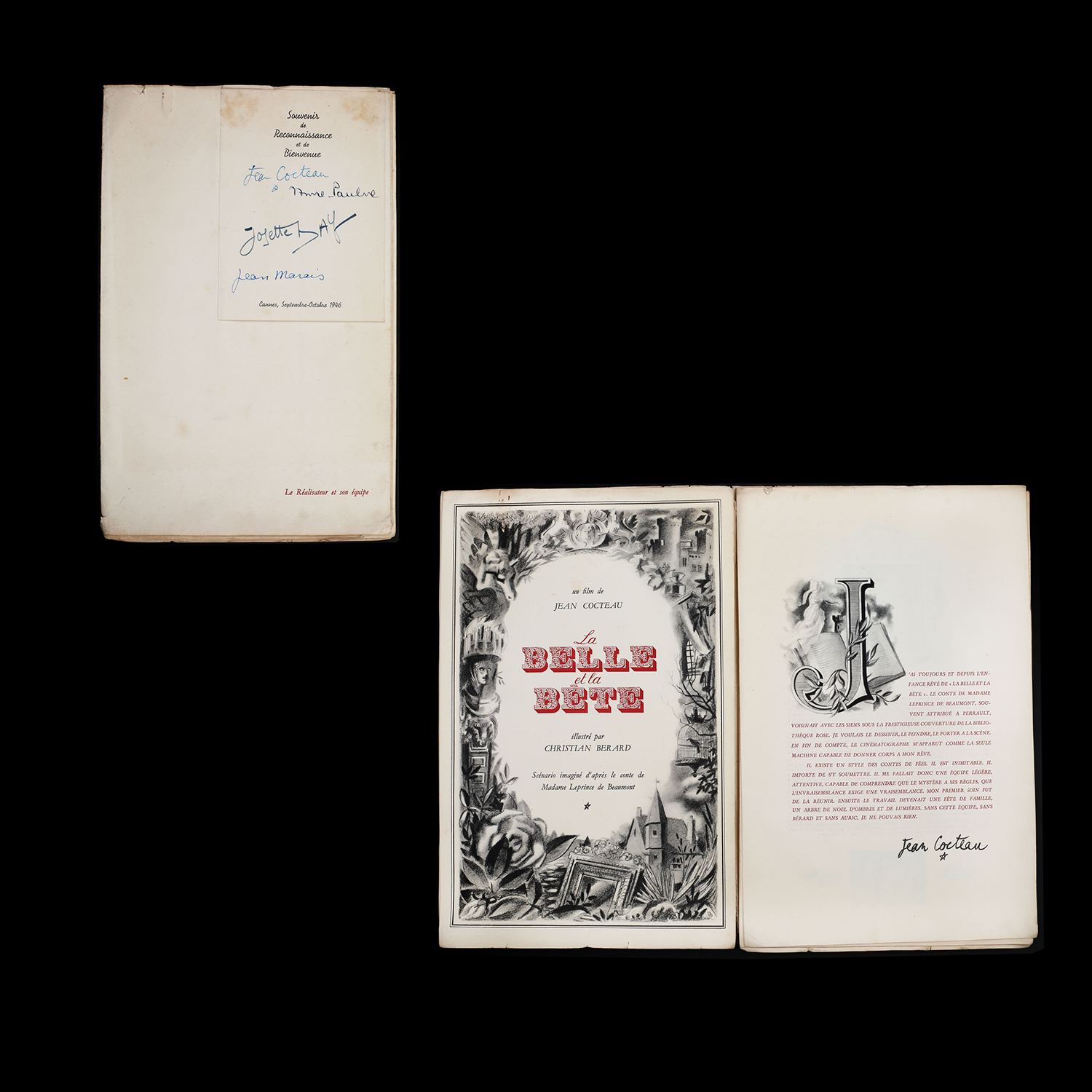 200. Scenariul filmului "Frumoasa și Bestia", de Jean Cocteau, franceză, Cannes, 1946, cu semnăturile olografe ale lui Jean Cocteau și Jean Marais