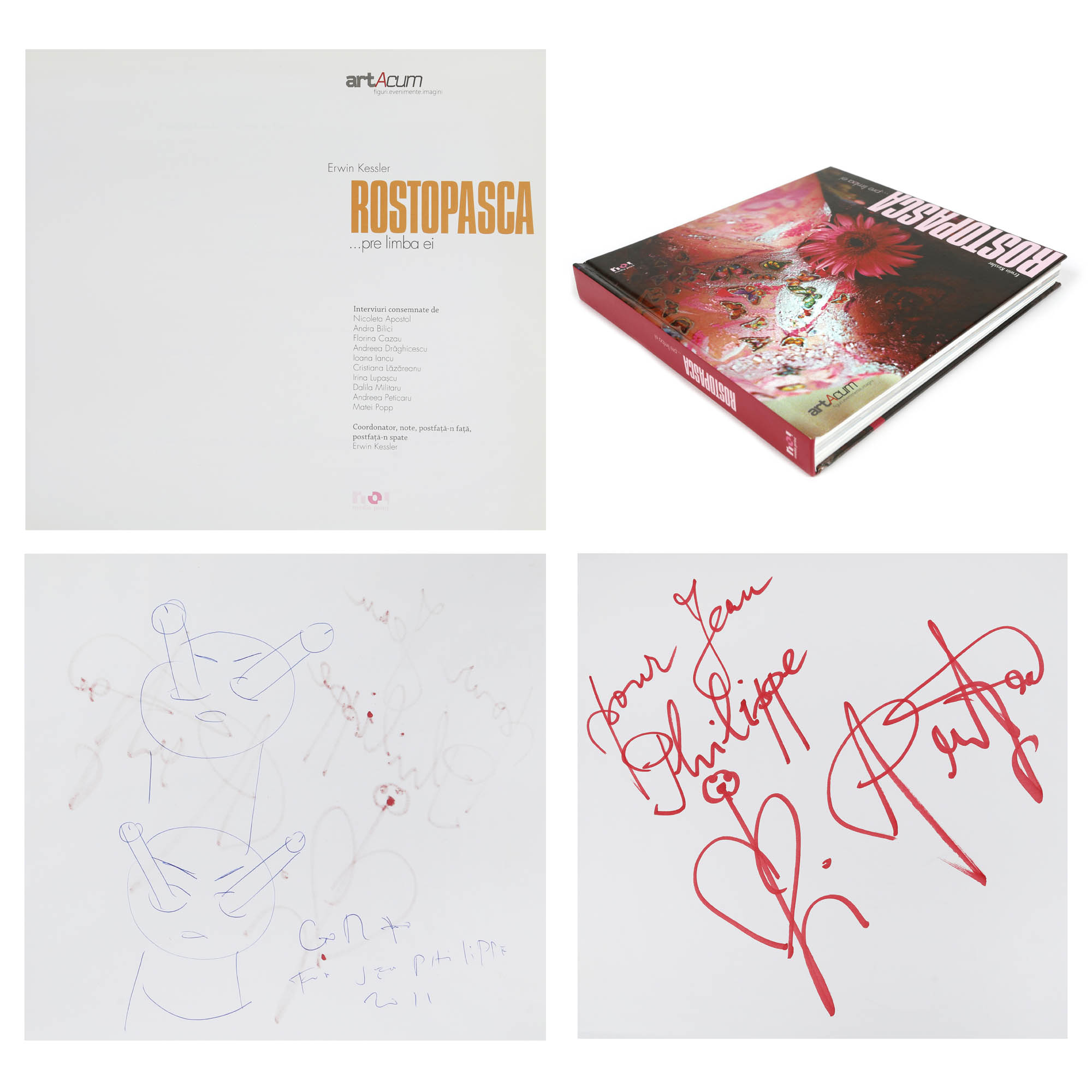 93. Album, "Rostopasca...pre limba ei", București, 2011, cu dedicație olografă către Jean-Philippe Guilbert din partea lui Nicolae Comănescu, respectiv cu un desen original de Dumitru Gorzo