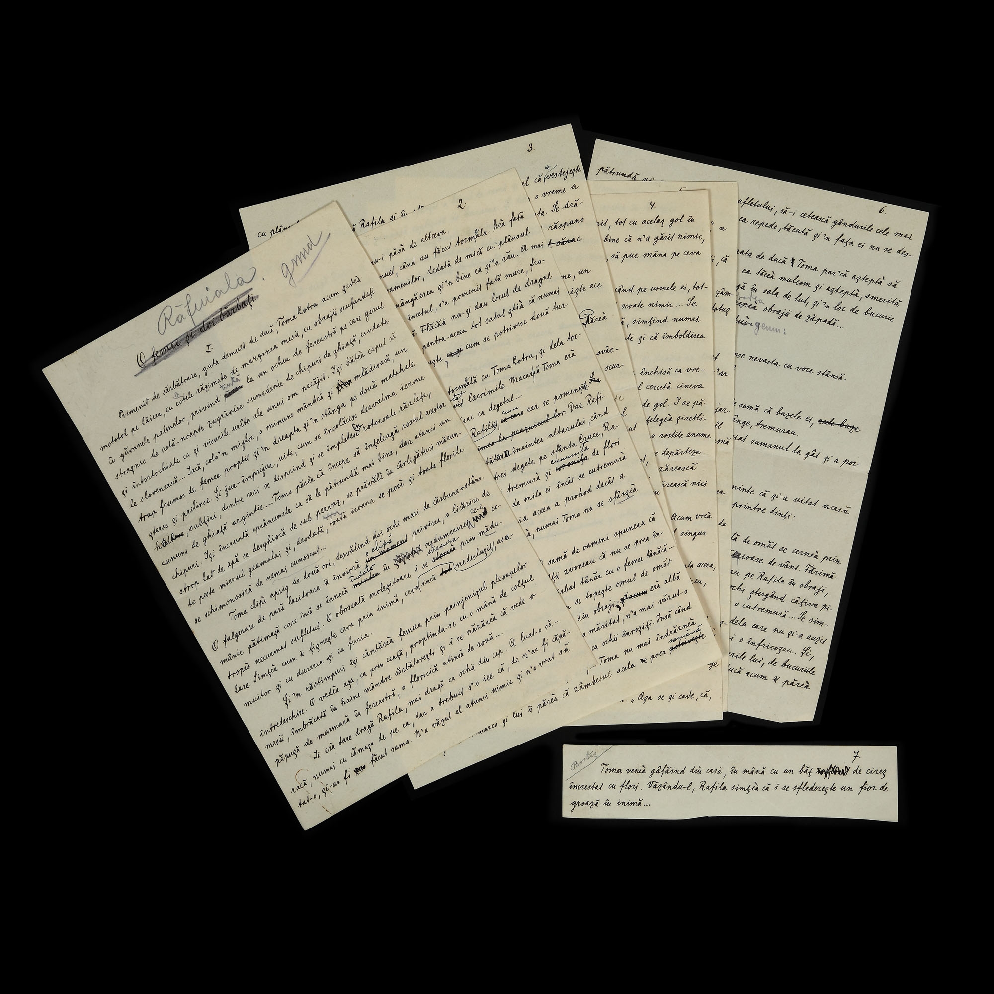 71. Manuscrisul nuvelei ”Răfuiala” (inițial denumită "O femee și doi bărbați), de Liviu Rebreanu, 1909 (șapte file)