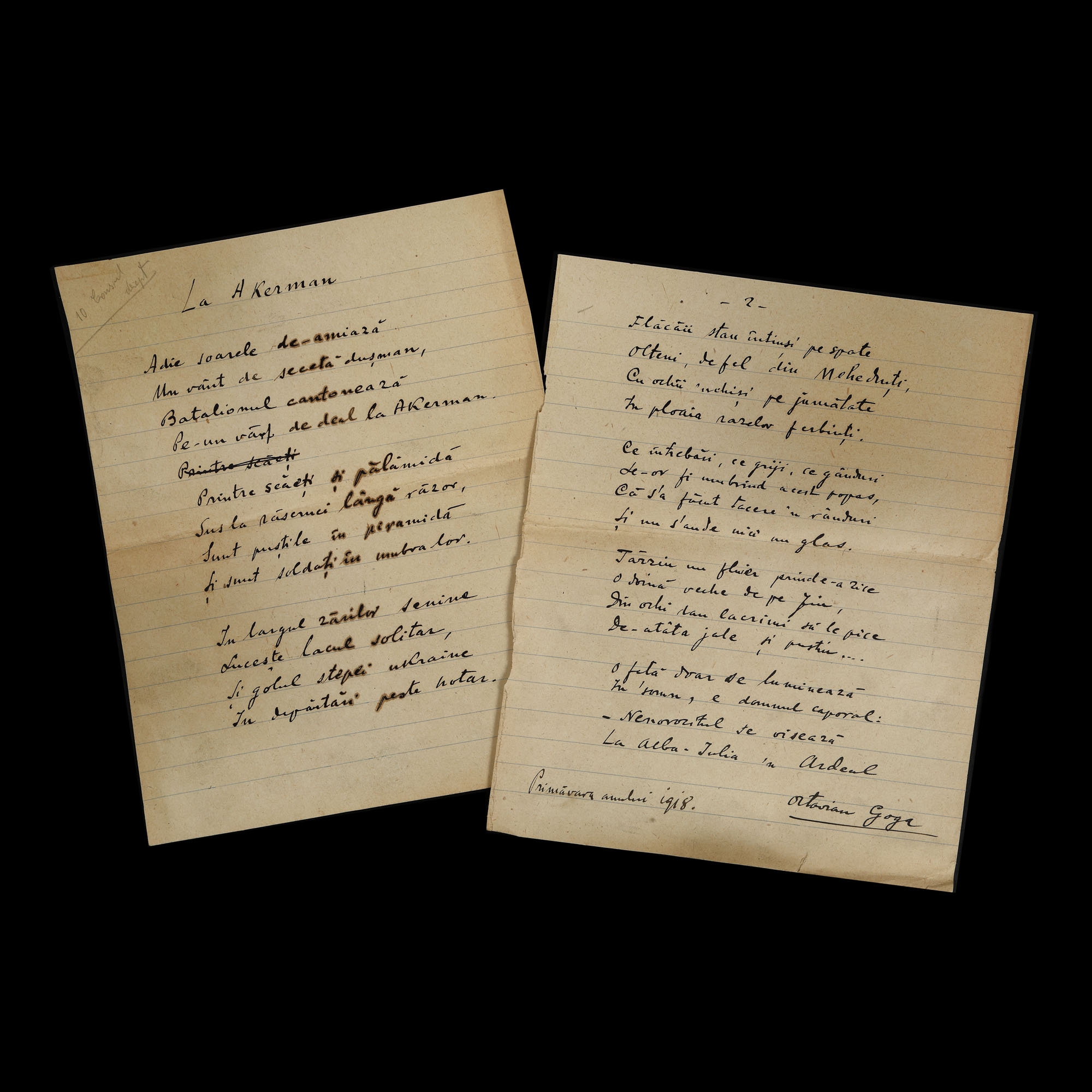 72. Manuscrisul poeziei ”La Akerman”, de Octavian Goga, 1918 (două file)