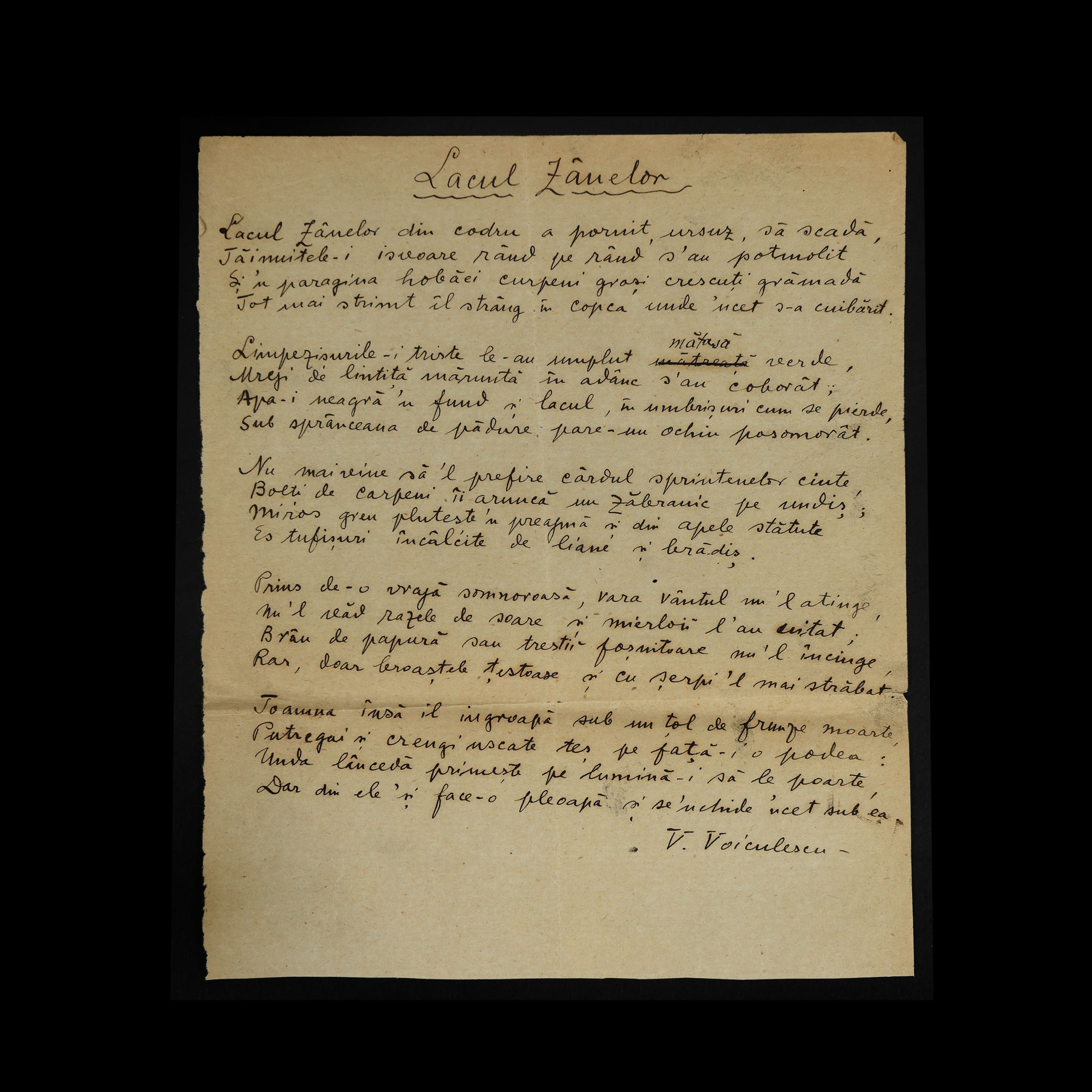 77. Manuscrisul poeziei ”Lacul Zânelor”, de Vasile Voiculescu, 1919, cu semnătura olografă
