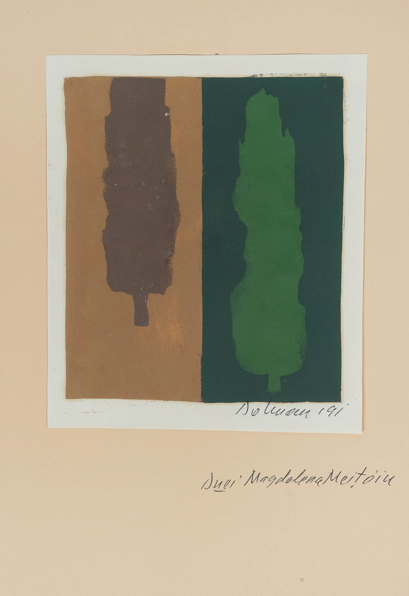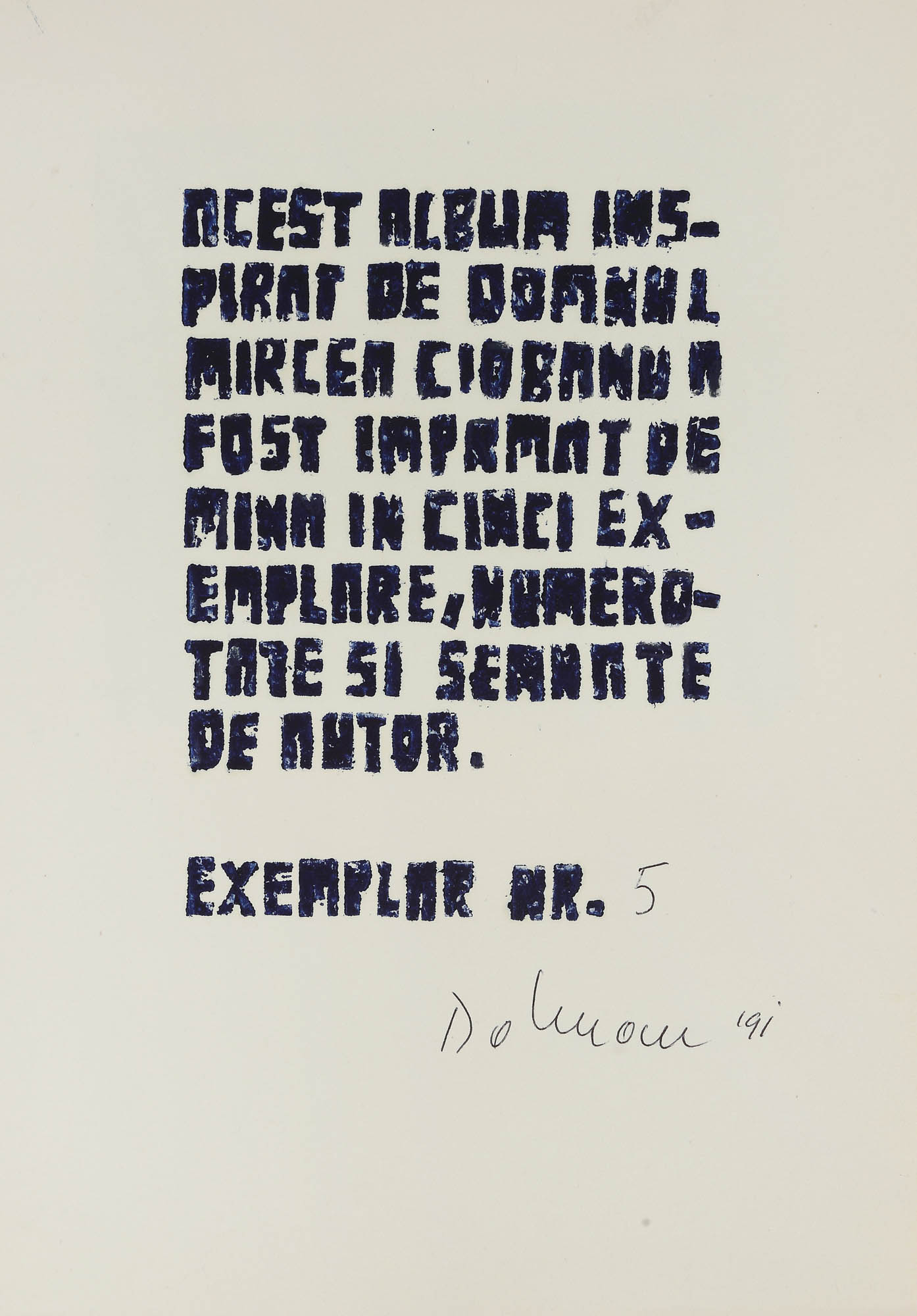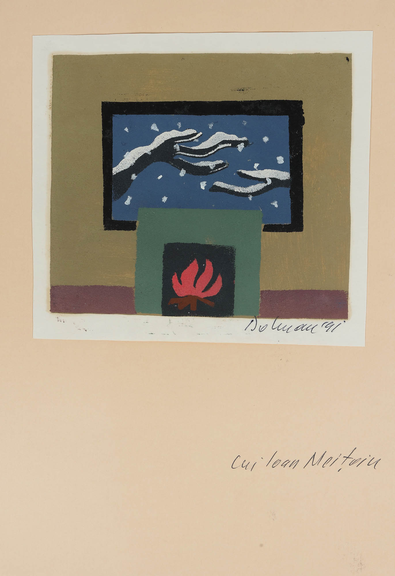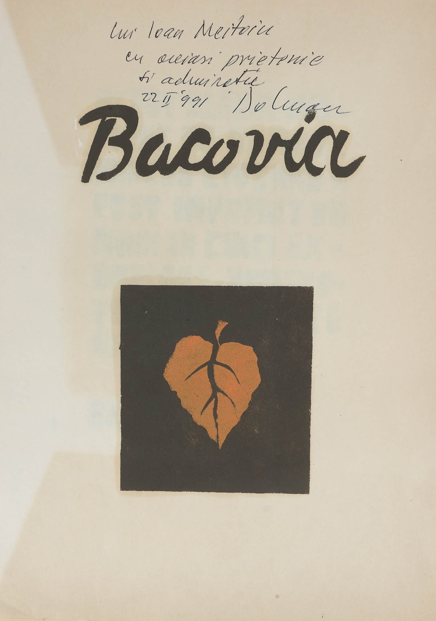 91. Mapă ”Bacovia”, de Vasile Dobrian, 1991, cu 8 gravuri originale, dedicația și semnătura olografă a autorului către poetul Ioan Meițoiu, piesă foarte rară
