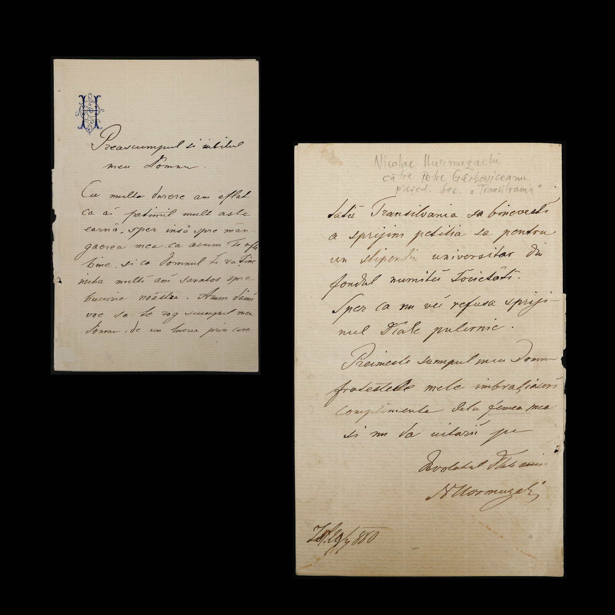 109. Scrisoare trimisă de baronul Nicolae Hurmuzaki către pedagogul Petre Gârboviceanu, 29 aprilie 1880, cu semnătura olografă