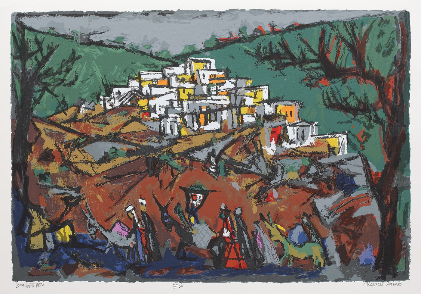 semnat,datat, intitulat şi numerotat central jos, în creion, "Marcel Janco, Ein Hod, 1954, 5/150"