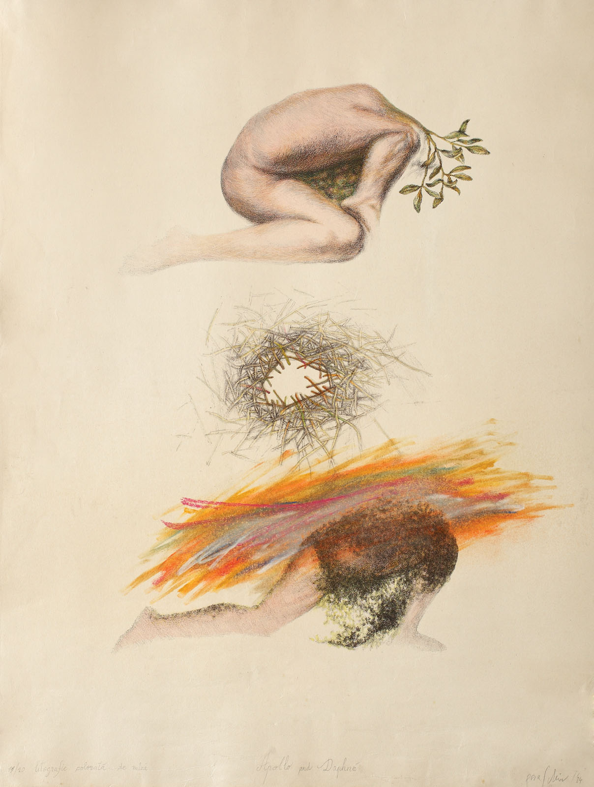 semnat, datat, intitulat şi numerotat central jos, în creion, paraschiv, (19)84, "Apollo and Daphne", 16/10