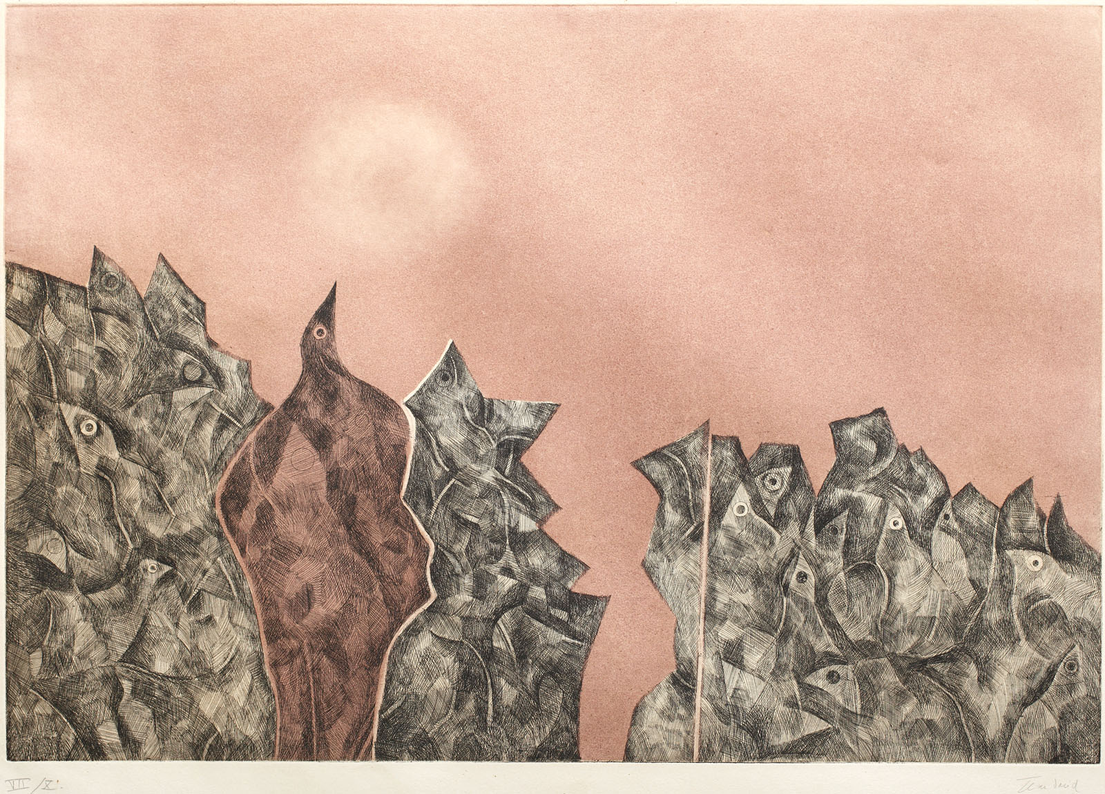 semnat dreapta jos, în creion, Jean David; numerotat stânga jos, în creion, VII/X