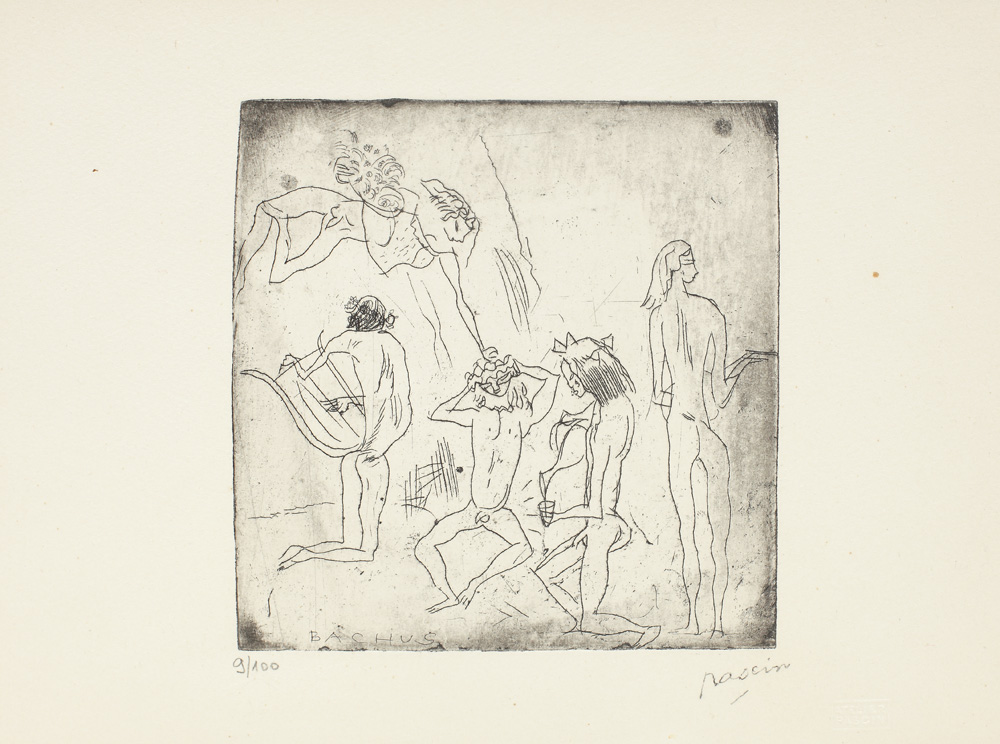 semnat dreapta jos, în peniţă, pascin; intitulat stânga jos, în placă, BACHUS; numerotat stânga jos, în creion, 9/100