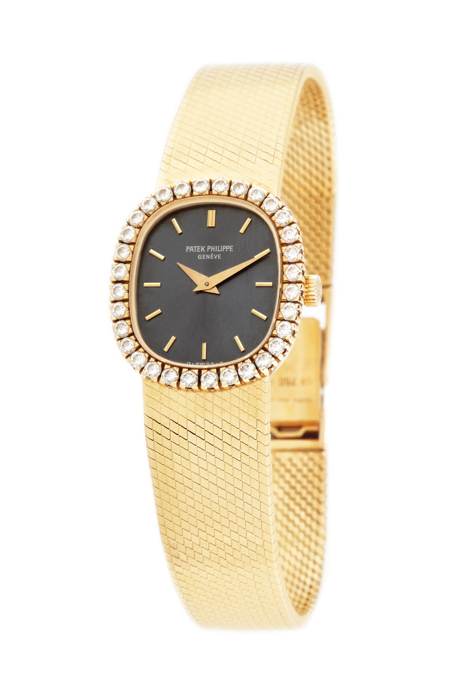43. Ceas Patek Philippe de mână, de damă, din aur, cu bezelul ornat cu diamante [Anii 60-70]
