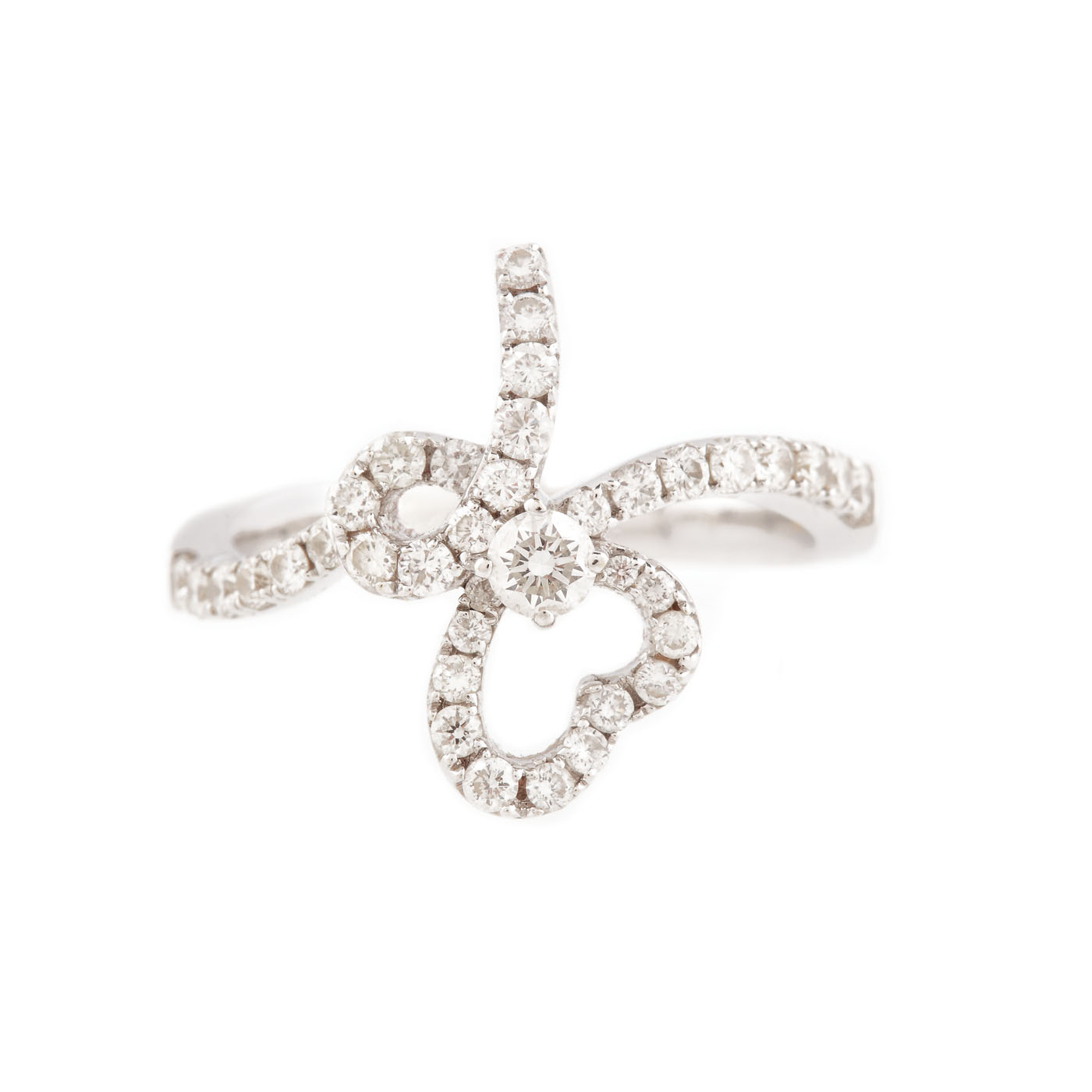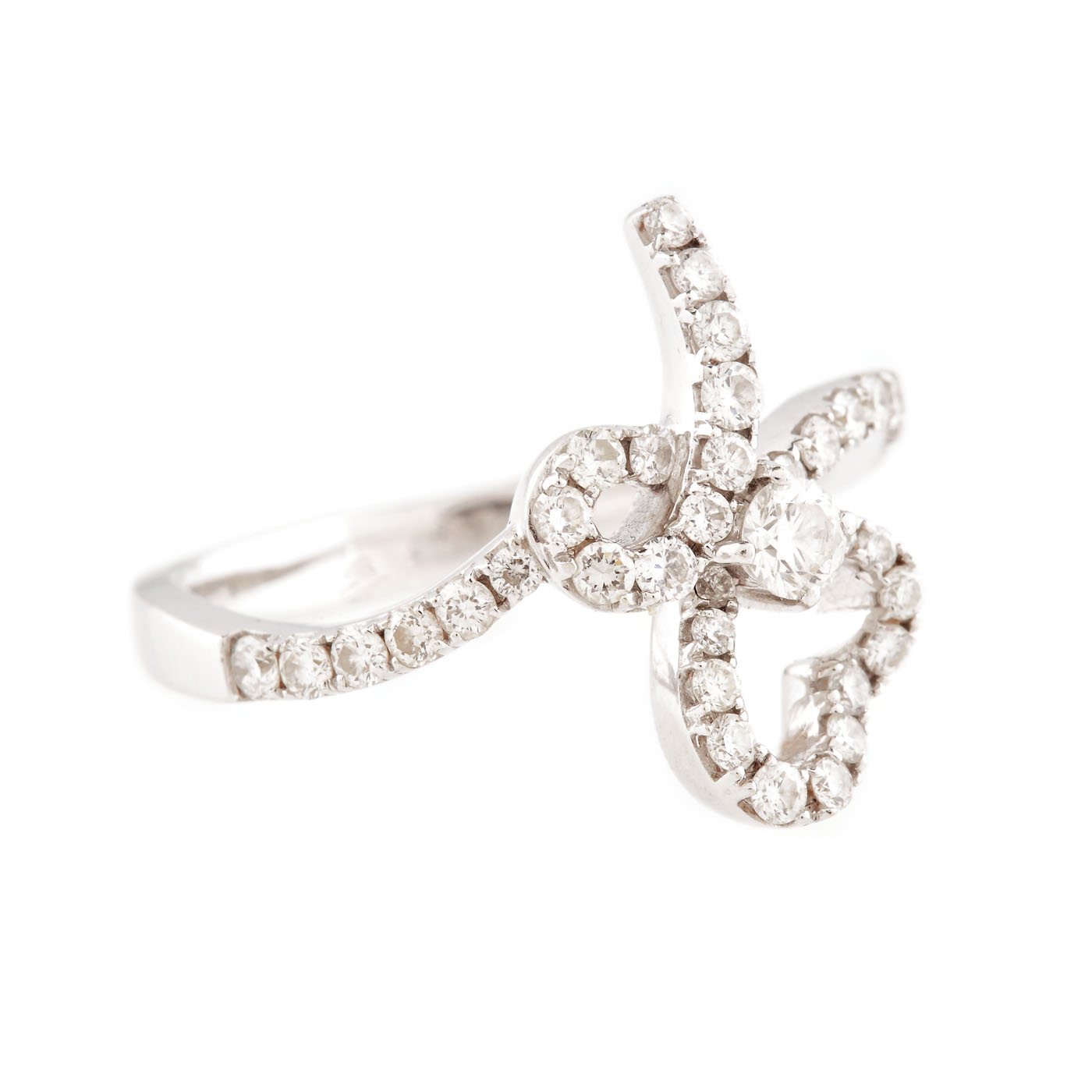 39. Inel din aur alb, decorat cu fundiță de diamante