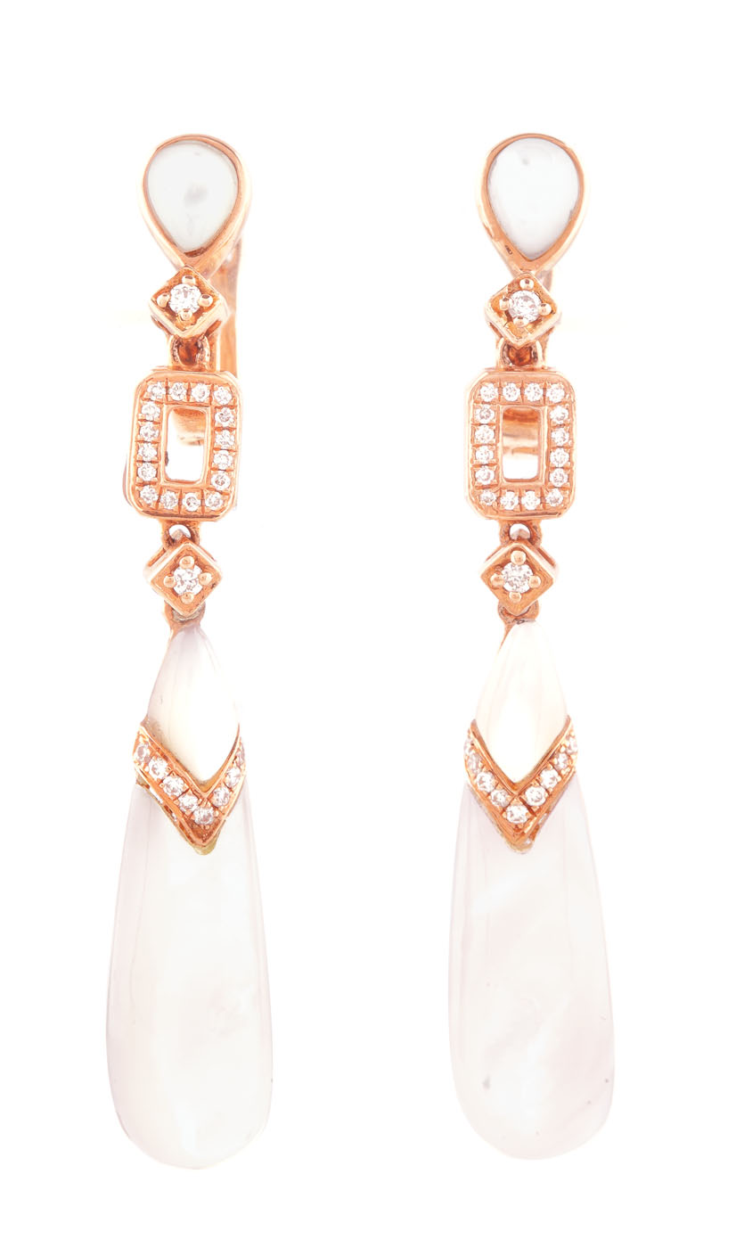 50. Pereche de cercei din aur roz, decorată cu diamante și sidef