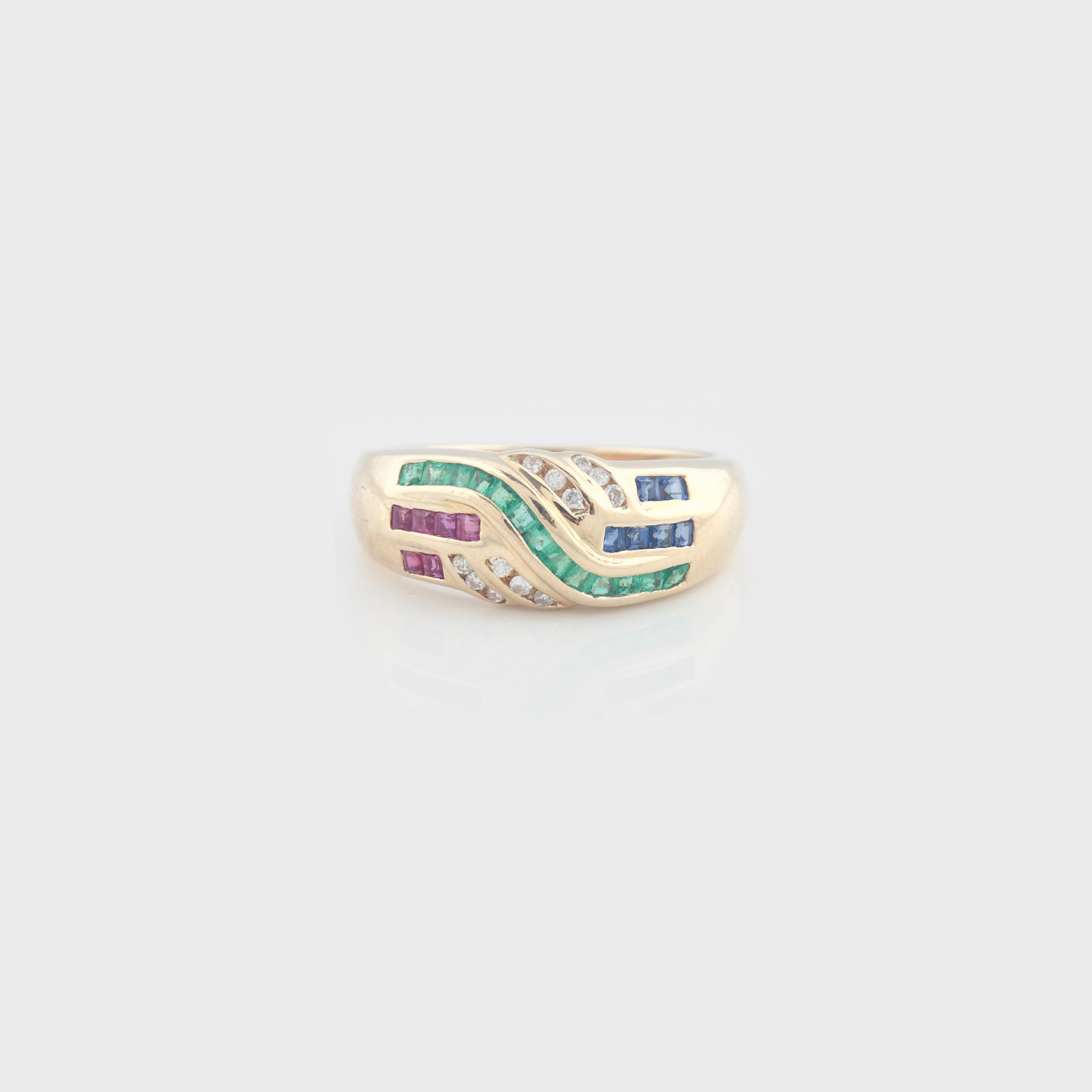 94. Inel din aur, decorat cu împletitură de smaralde, safire, rubine și diamante