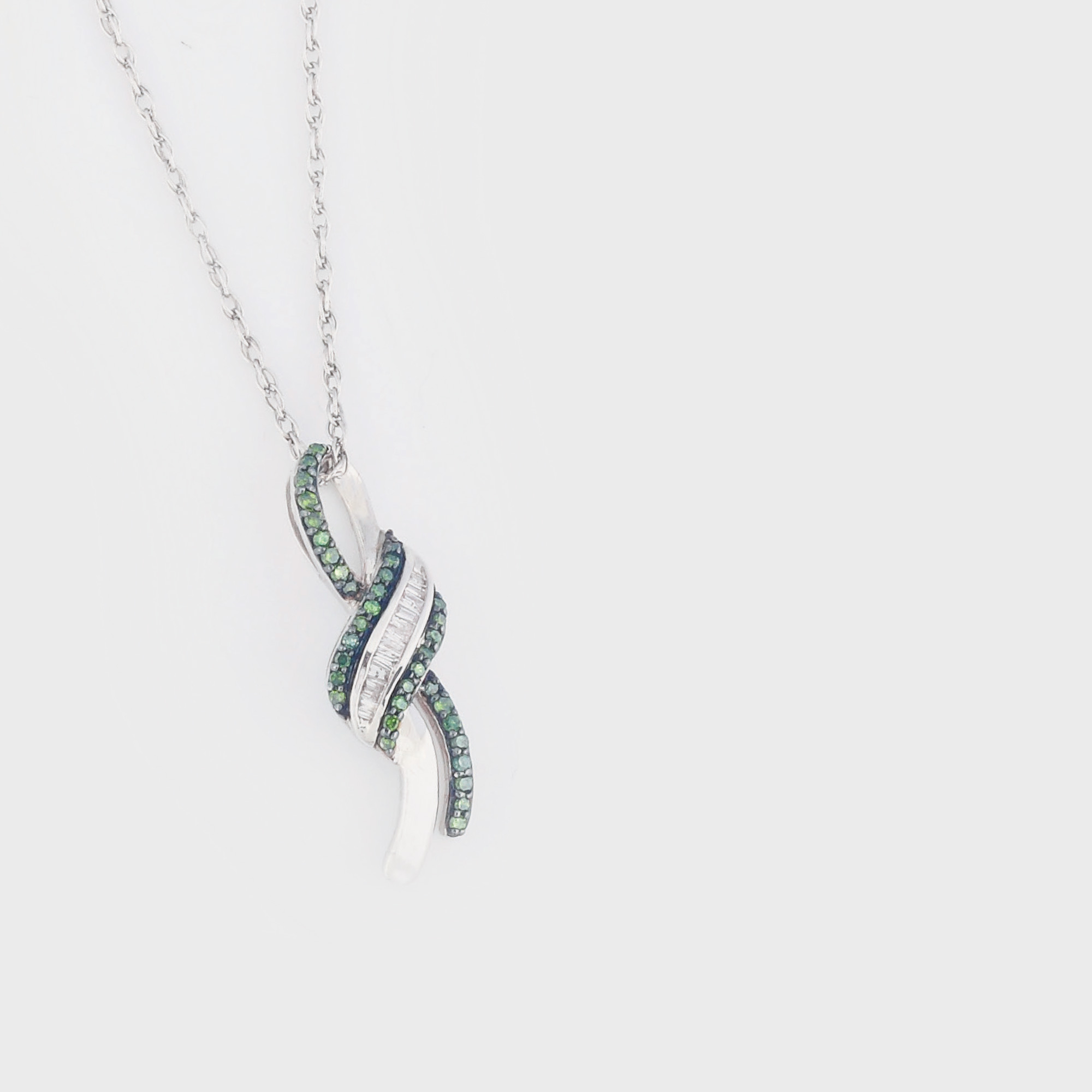 93. Lanţ cu pandantiv din argint, decorat cu diamante albe şi verzi