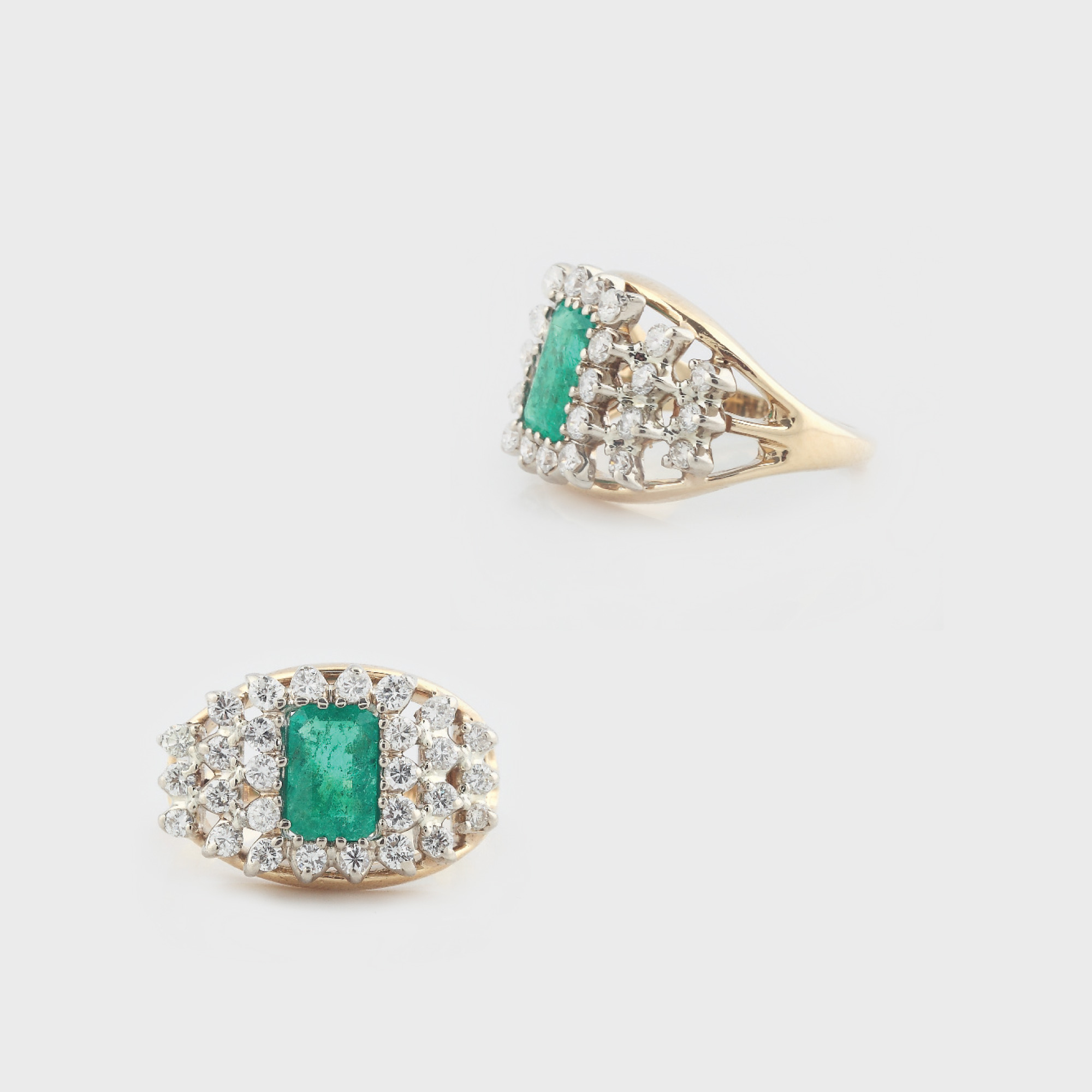 92. Superb inel din aur, decorat cu smarald şi diamante