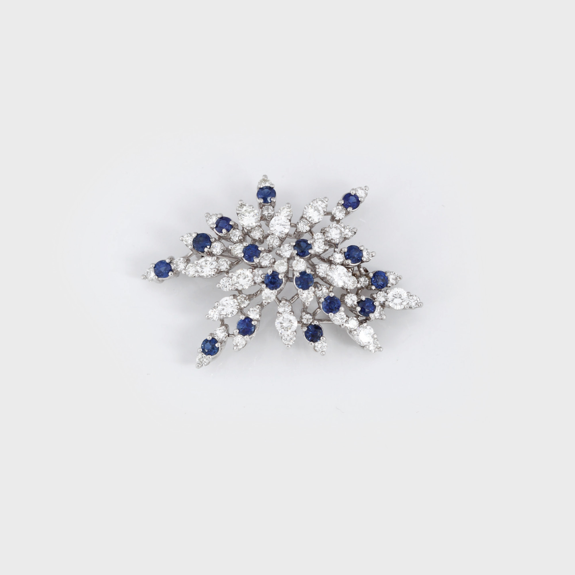 230. Elegantă broșă din platină, bogat decorată cu diamante și safire [Sec. XX]
