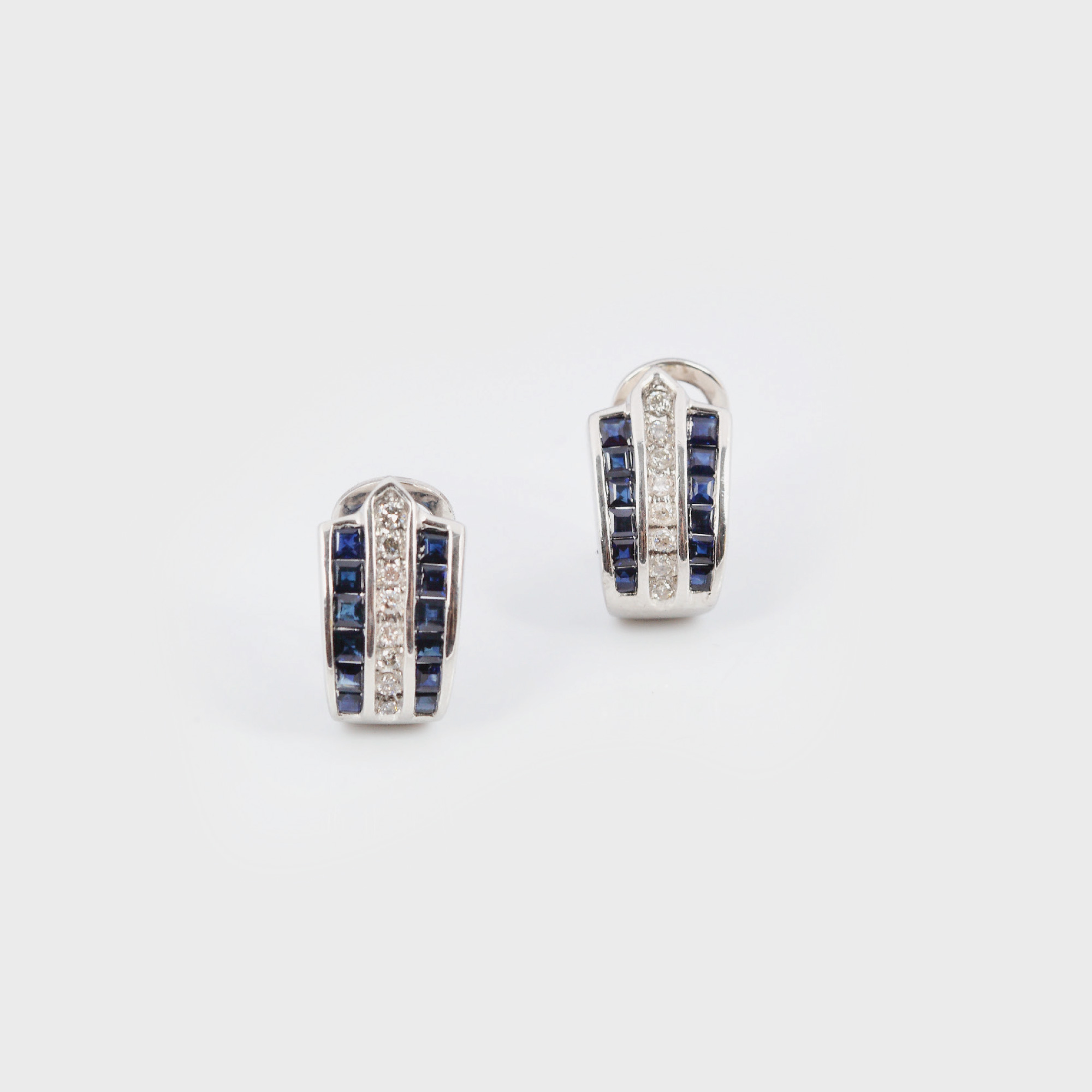 227. Pereche de cercei din aur alb, bogat decorați cu pavaj de safire și diamante [Sec. XX]