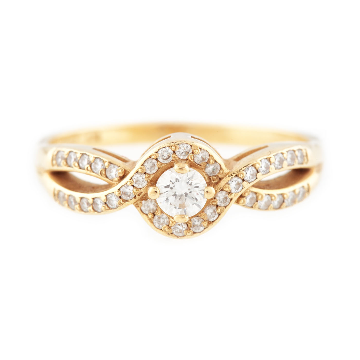 109. Inel din aur, decorat cu model împletitură de diamante și diamant central