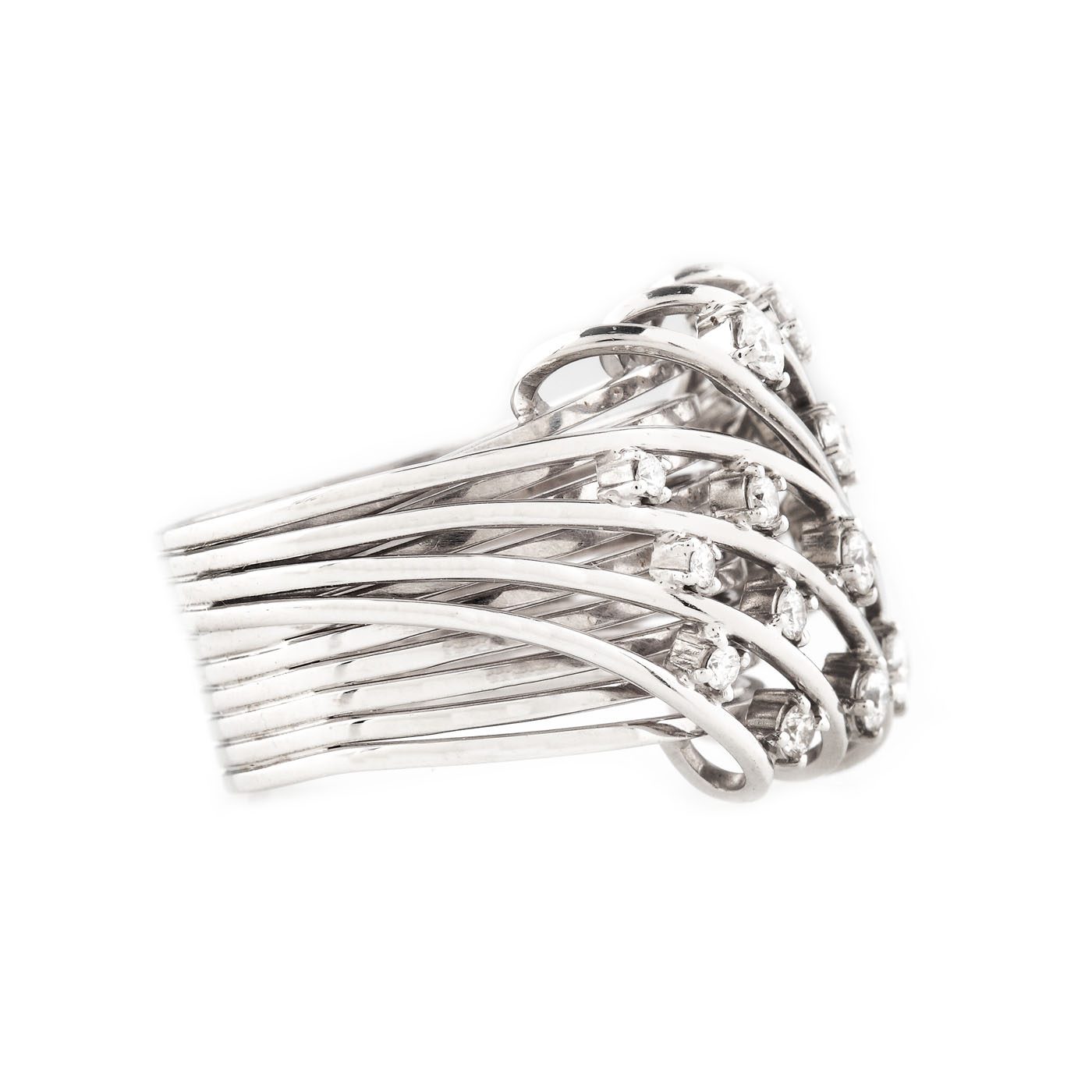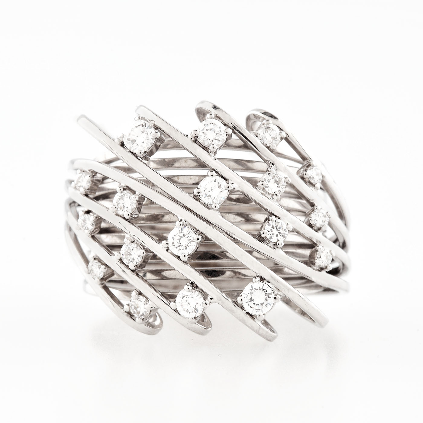 106. Interesant inel din aur alb, decorat cu diamante