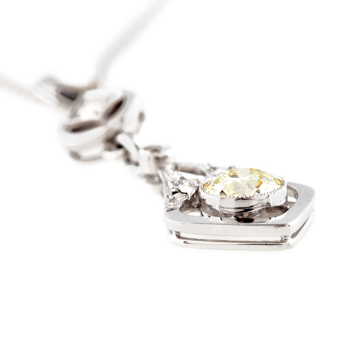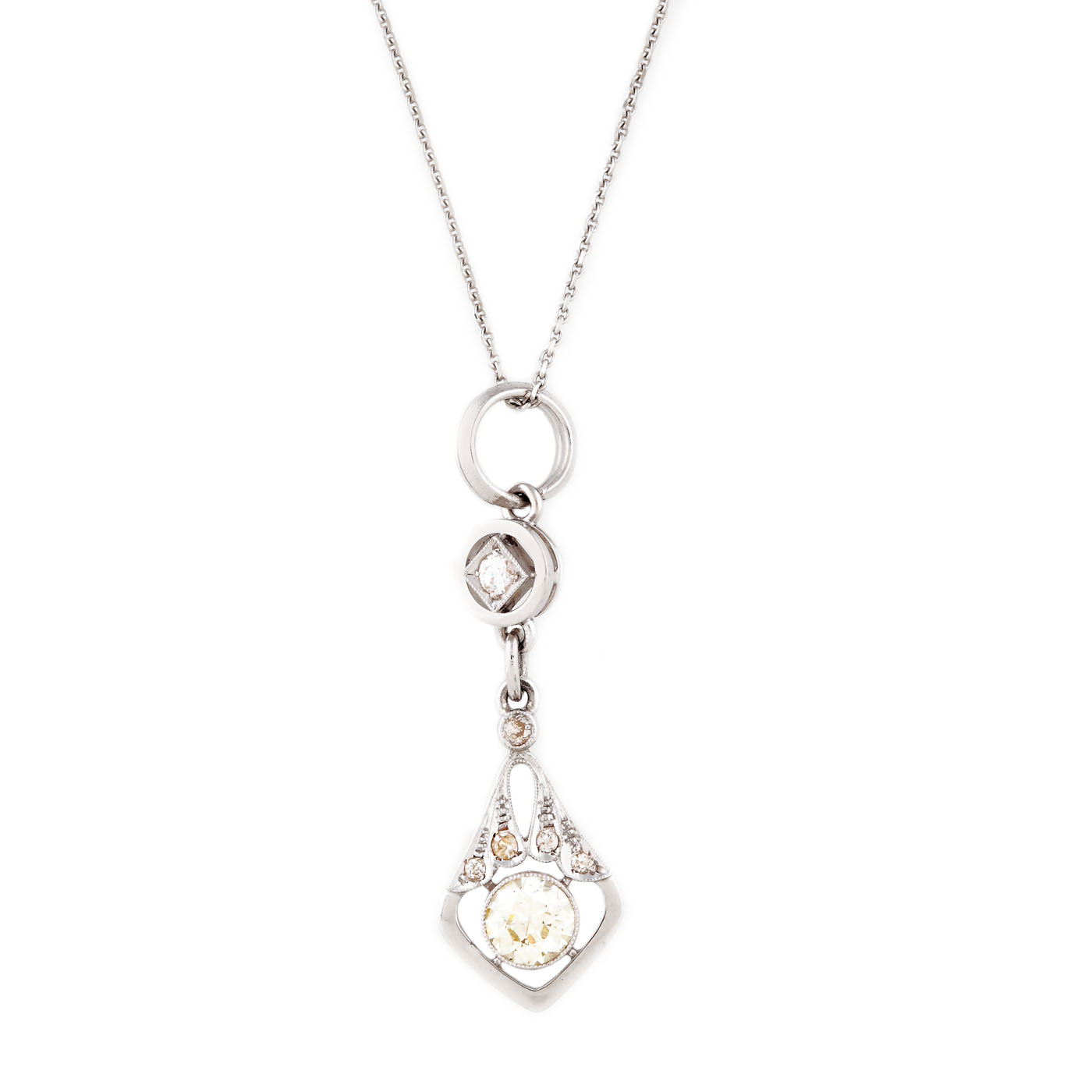 104. Lanț cu pandantiv din aur alb, decorat cu diamante