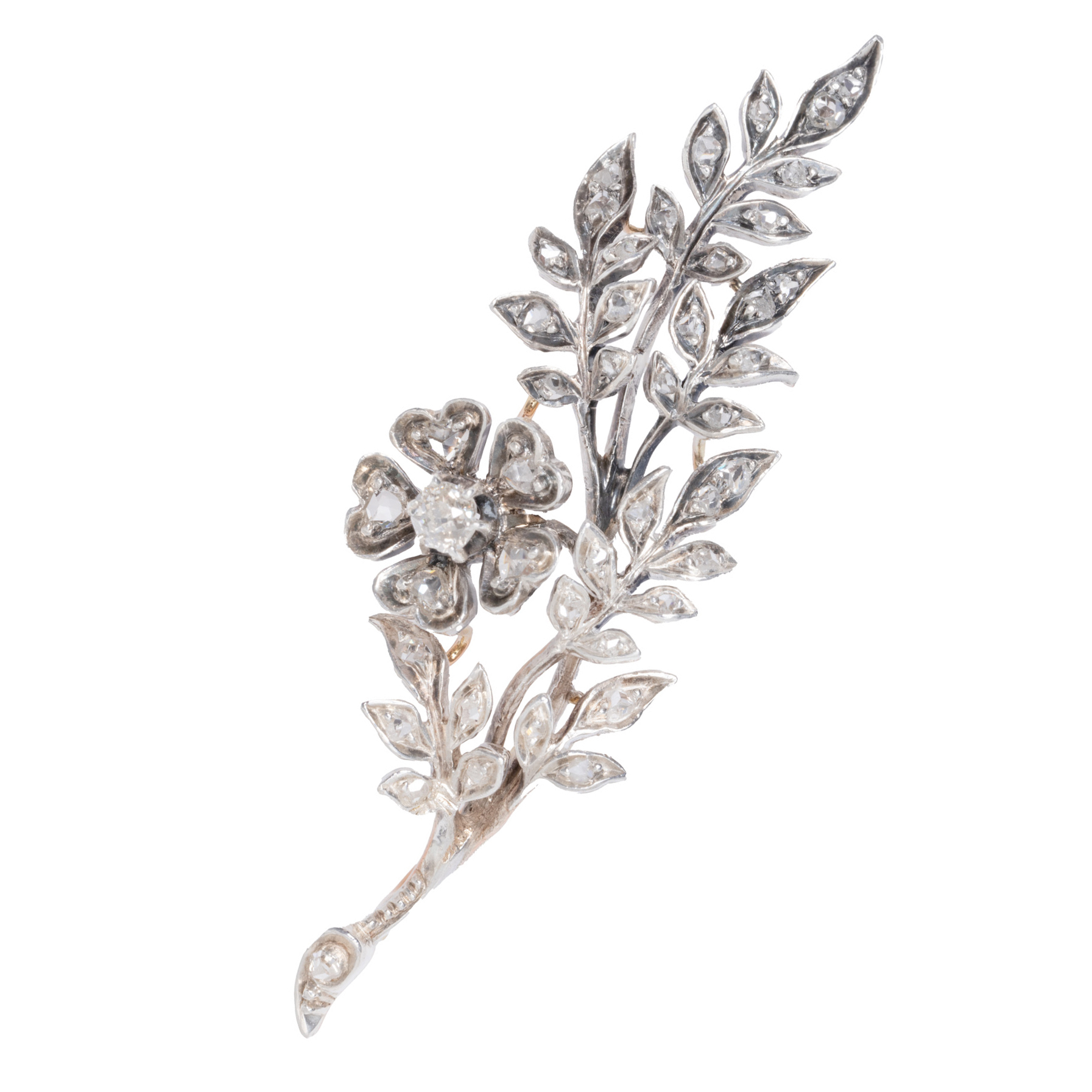 115. Broșă din aur roz și argint, decorată cu diamante, începutul sec. XX, însoțită de certificat gemologic suplimentar