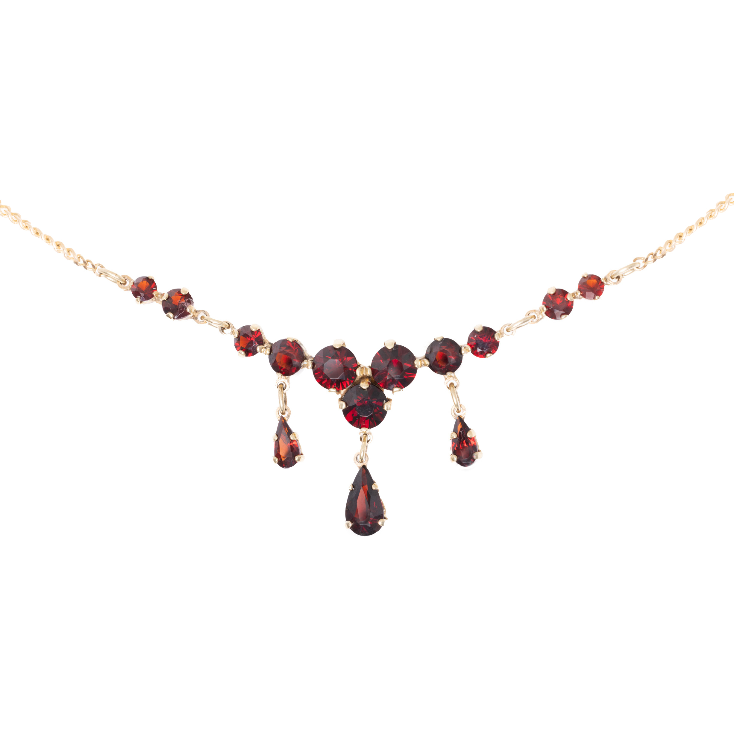 11 granate rotund fațetate și 3 granate pară fațetate