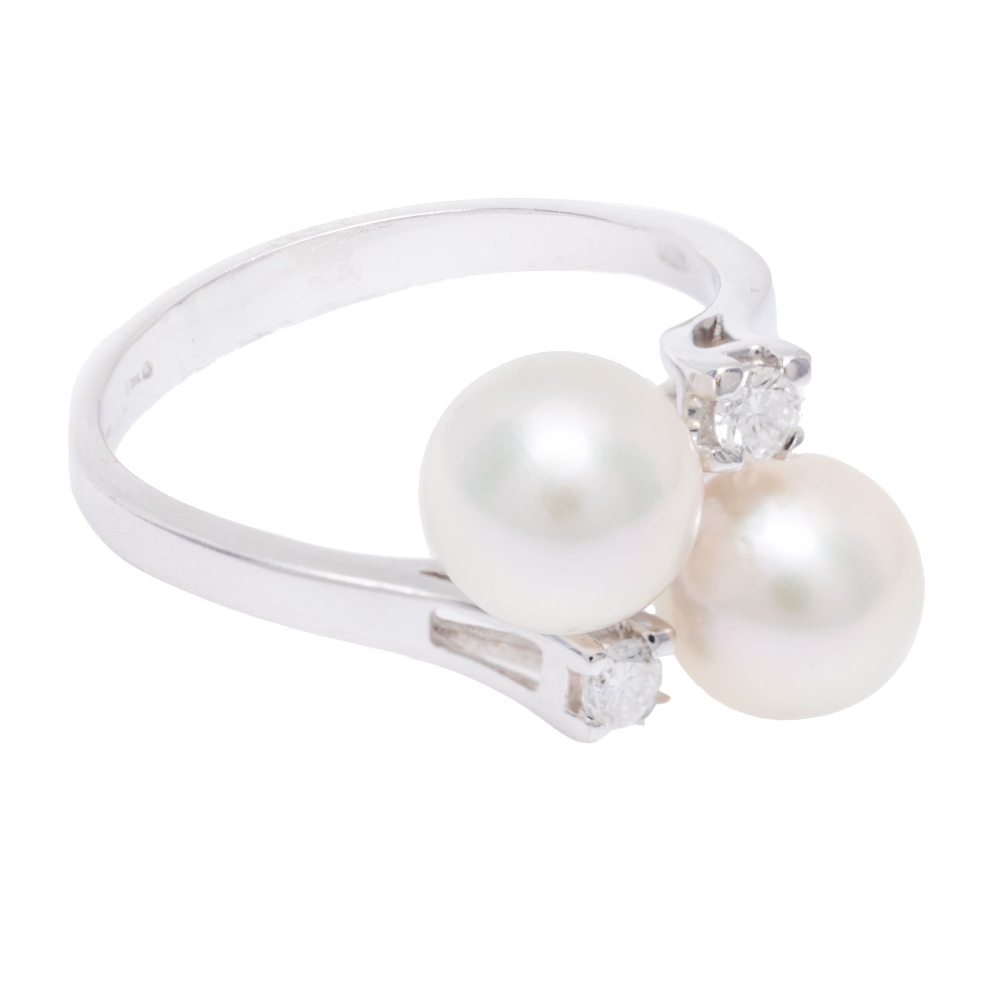 98. Inel din aur alb, decorat cu perle și diamante, însoțit de certificat gemologic suplimentar