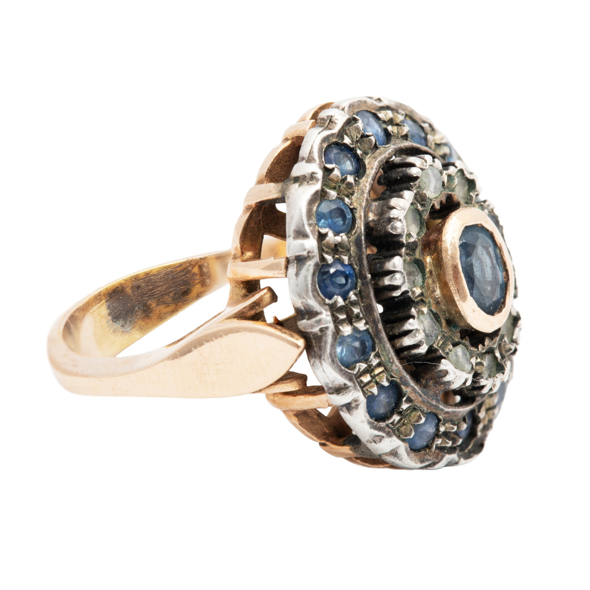19. Inel din aur și argint, în manieră Victoriană, decorat cu safire și diamante