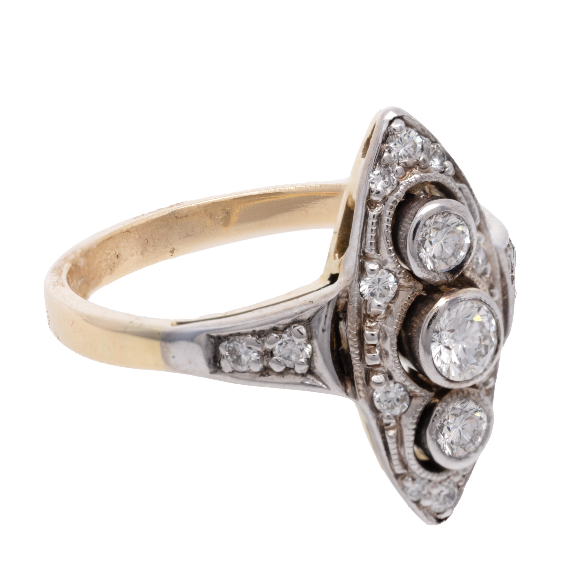 1. Spectaculos inel Art Deco, din aur bicolor, decorat cu diamante, însoțit de certificat gemologic suplimentar
