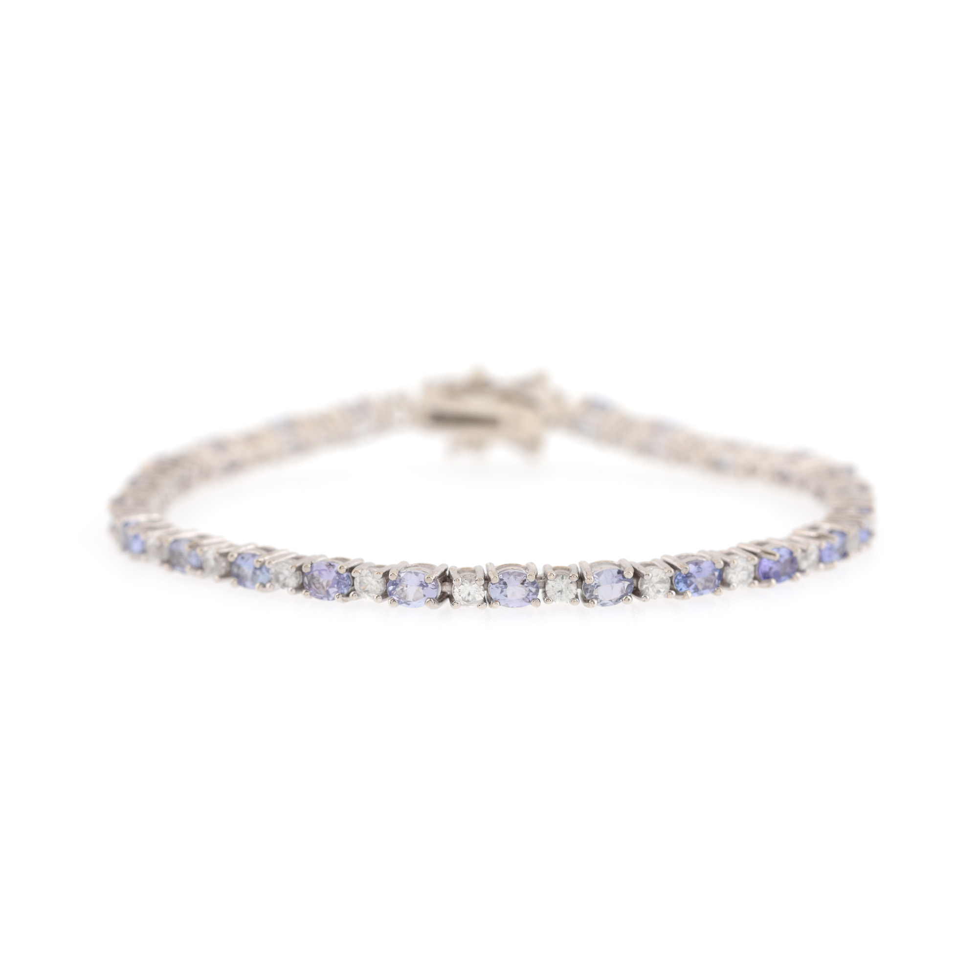 97. Brățară tennis din argint, decorată cu tanzanite și topaze