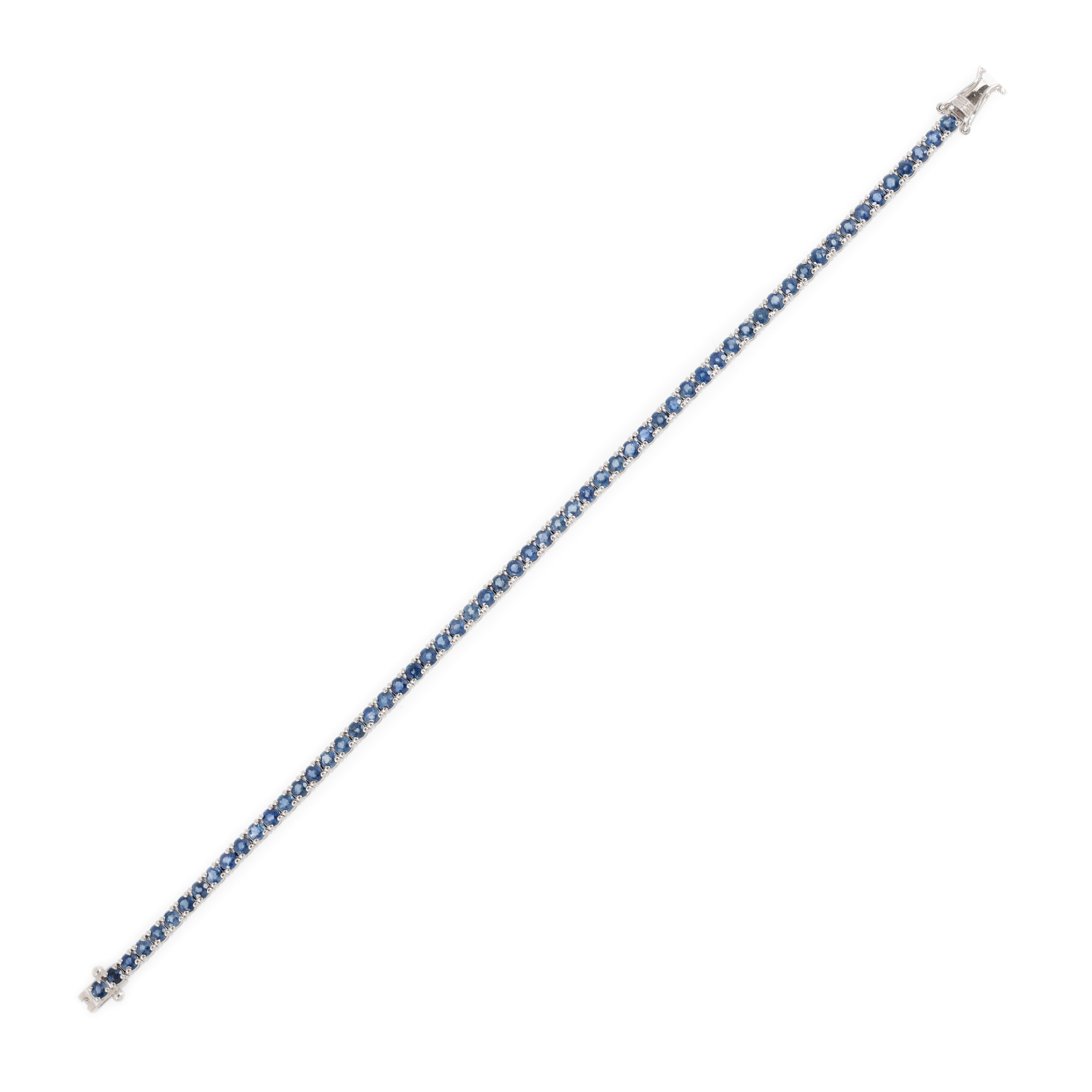 80. Brățară tennis din aur alb, decorată cu safire albastre