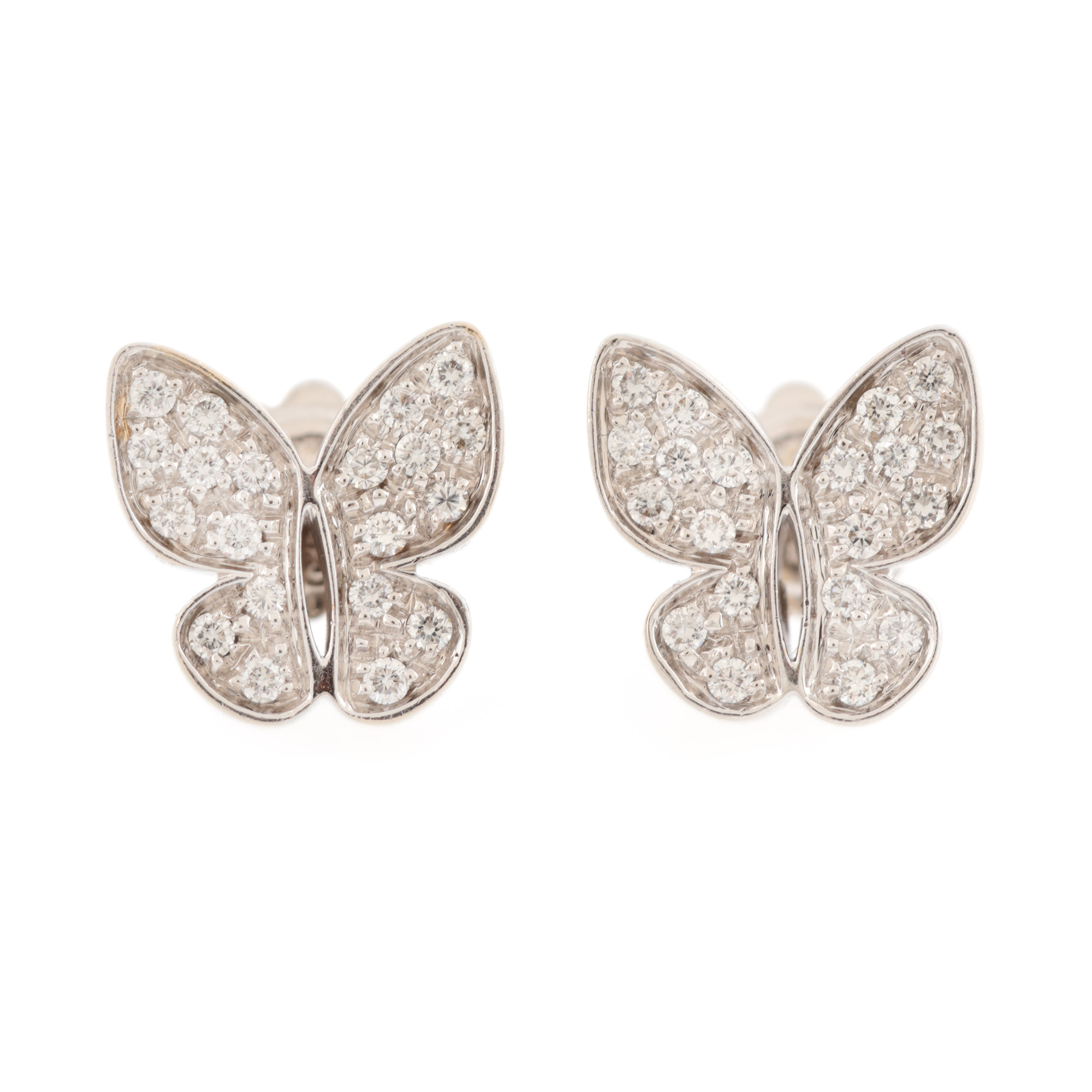 90. ”Butterflies” - pereche de cercei Sabrini, din aur alb, pavată cu diamante