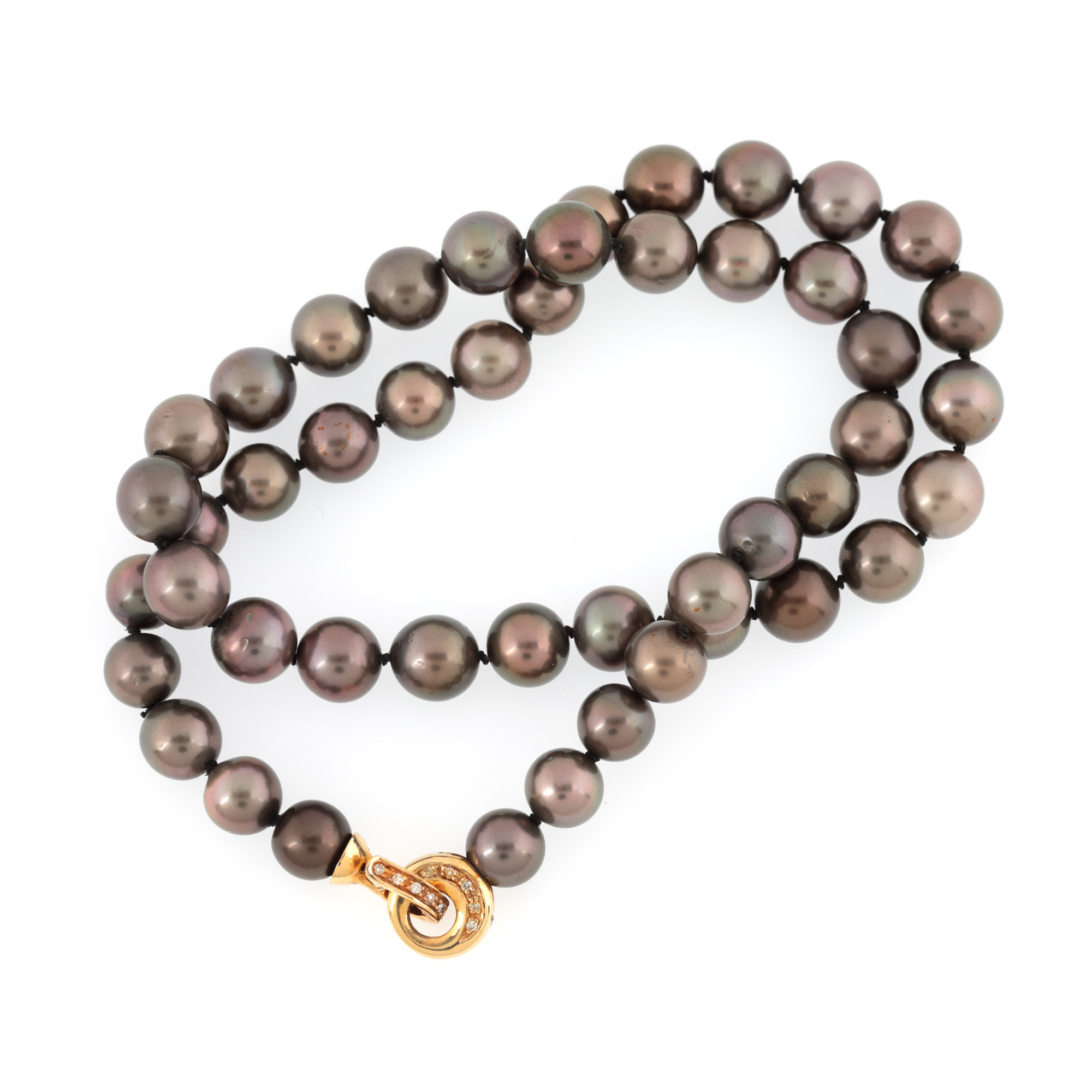 58. Colier din perle Tahiti, cu închizătoare din aur, decorată cu diamante [1960]