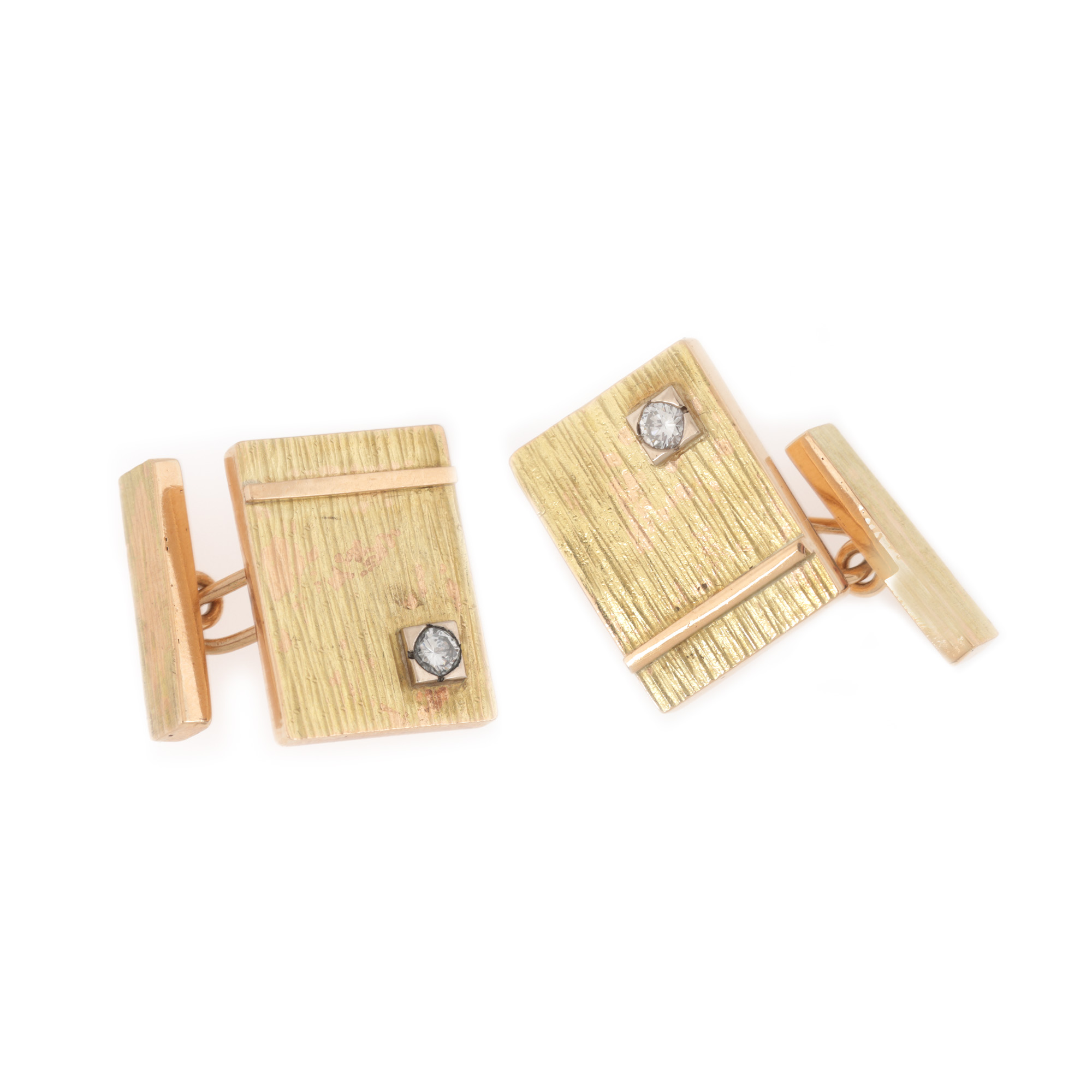 143. ”Cute as a Button” - pereche de butoni din aur galben și alb, ornată cu diamante