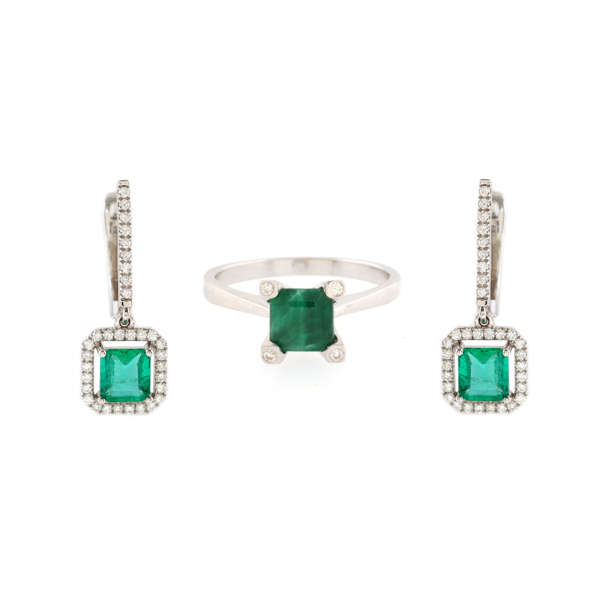 94. ”Emerald Splash” - set din aur alb, format din inel și pereche de cercei, decorat cu smaralde și diamante