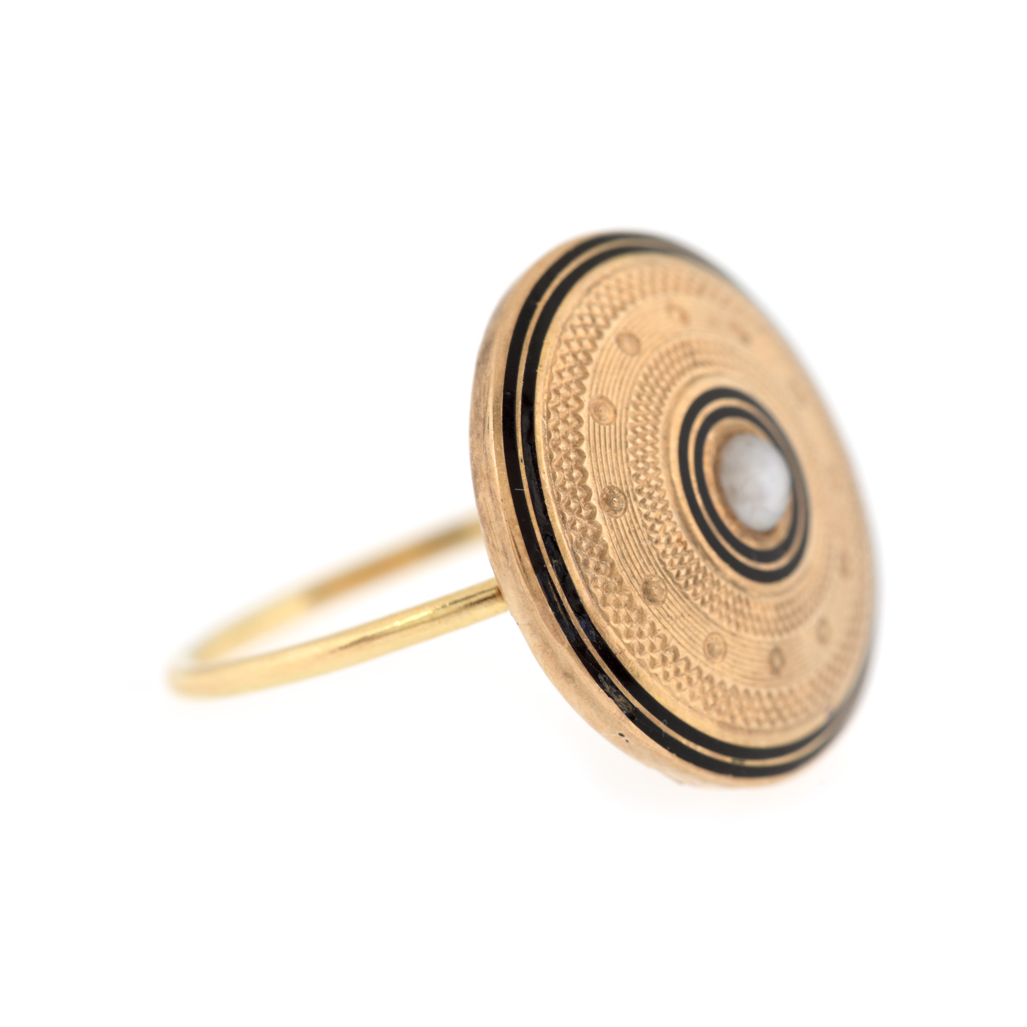 55. Inel din aur, decorat cu email și perlă, cca. 1880