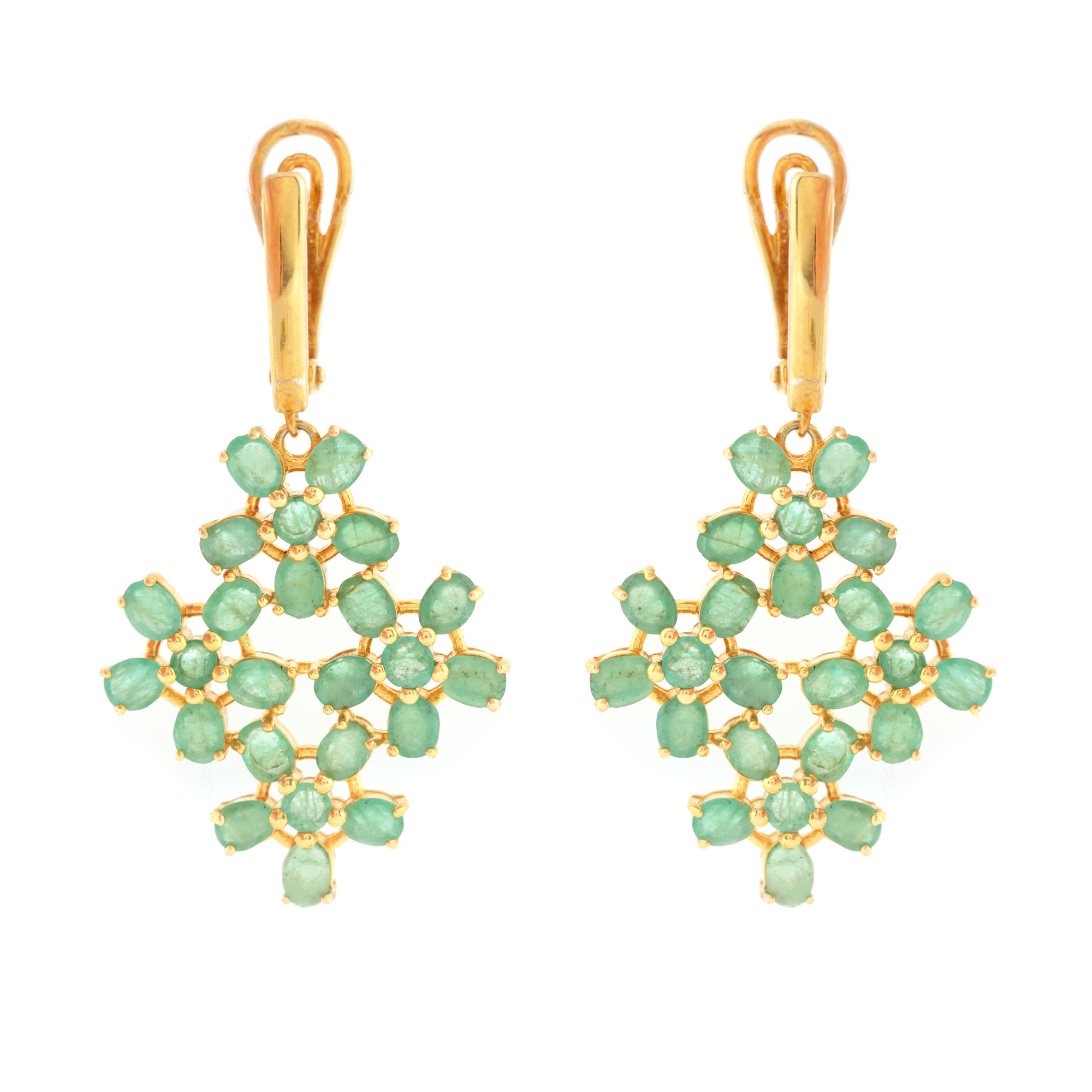 68. Pereche de cercei din argint aurit, decorată cu smaralde în model floral stilizat