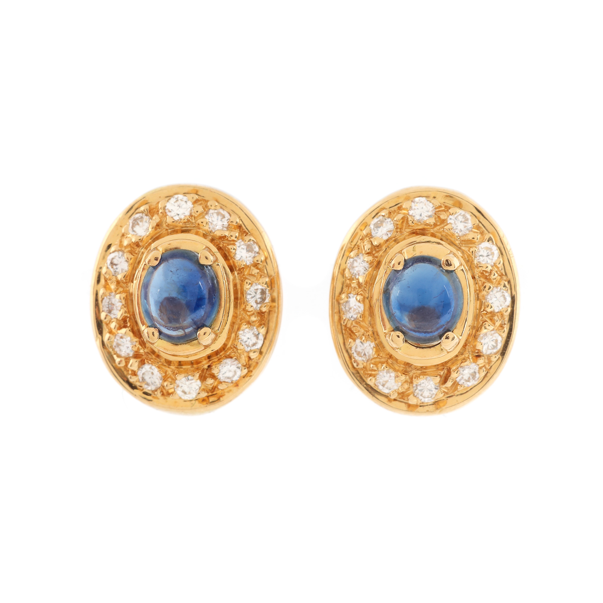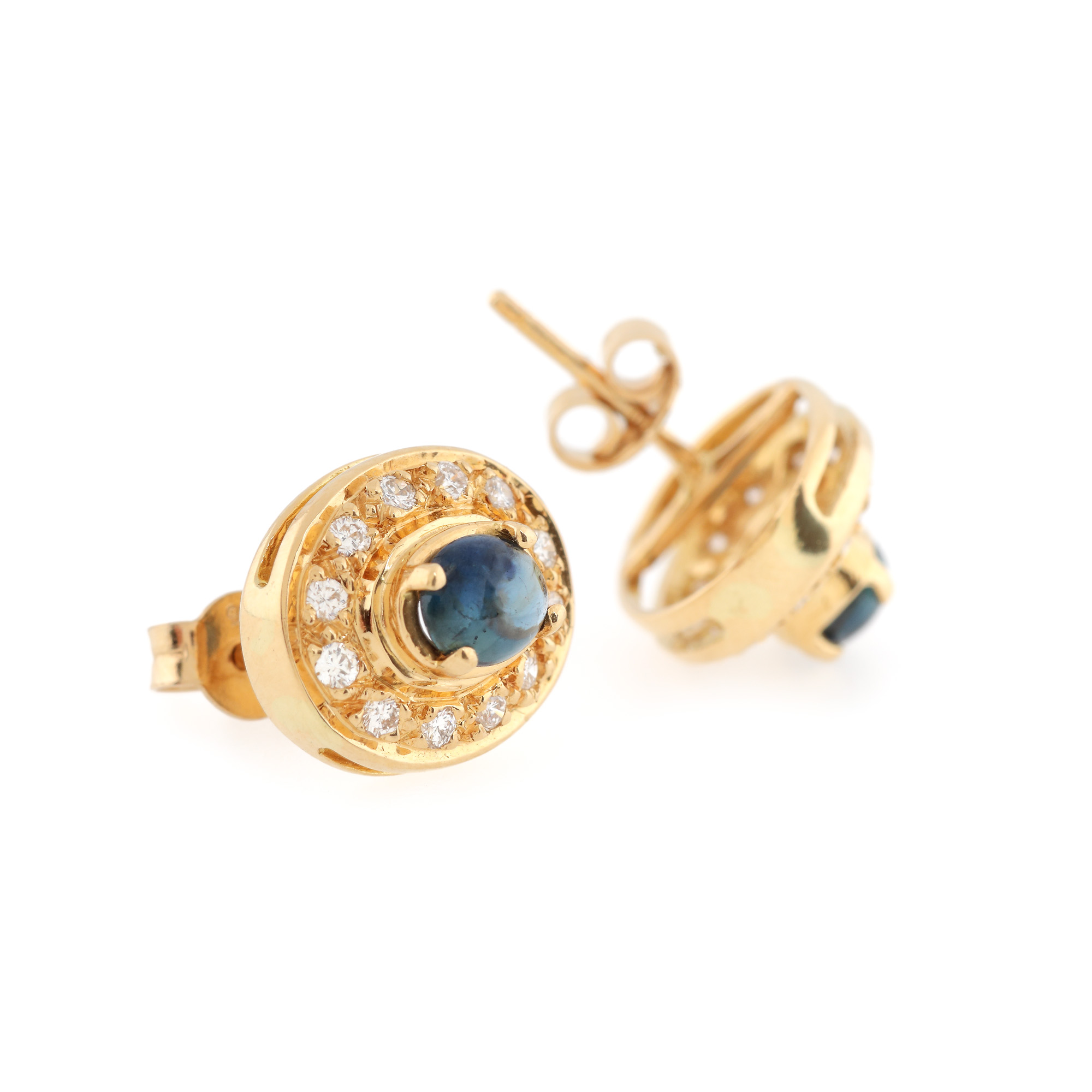 2 safire oval caboșon, culoare albastru, claritate SI, cca. 0,5 ct. și 24 diamante rotunde briliant, culoare H-I, claritate VS, cca. 0,48 ct.