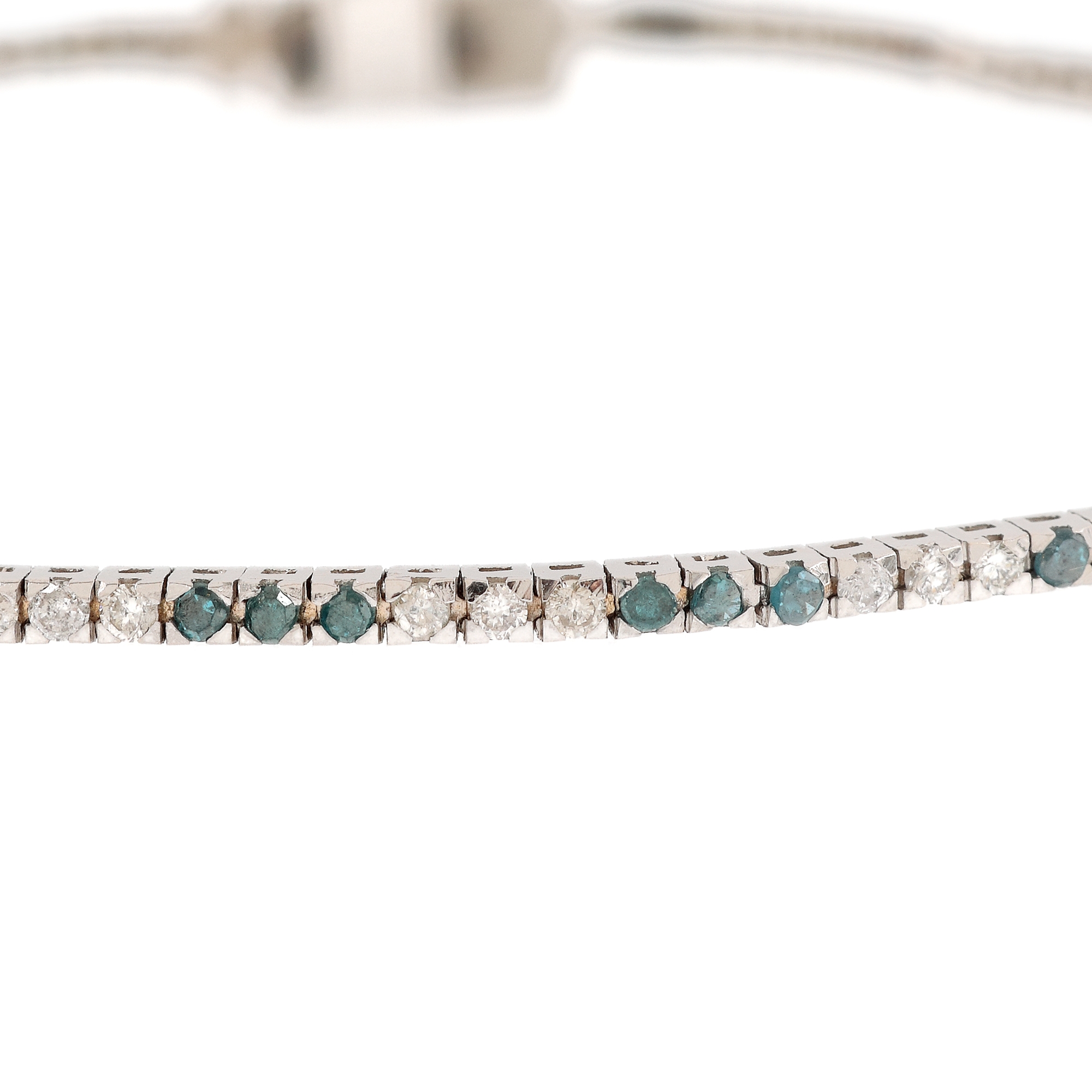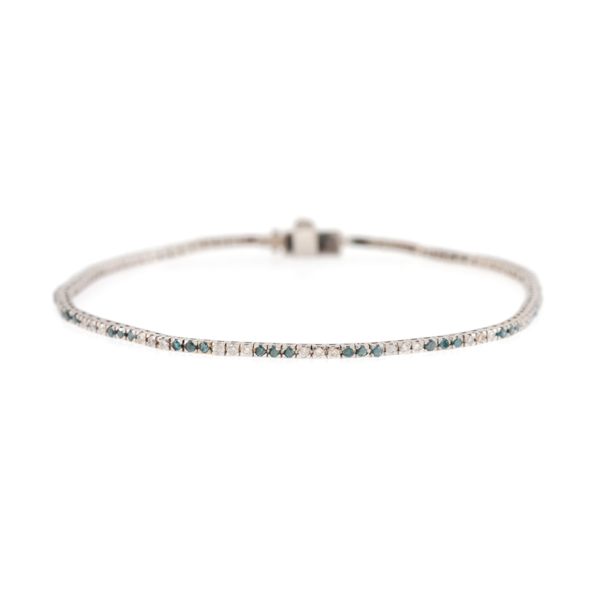 113. ”White and Blue” - brățară tennis din aur alb, decorată cu diamante albe și albastre